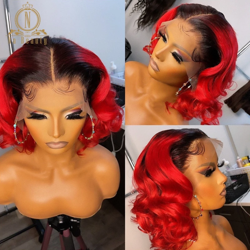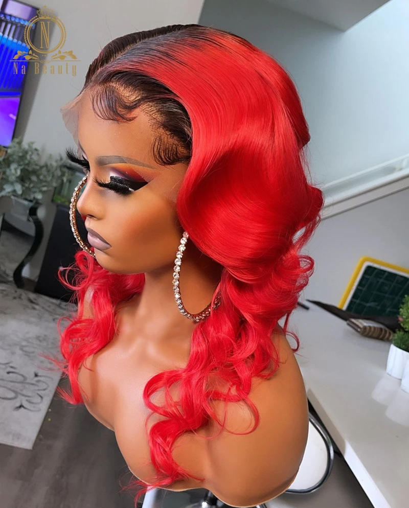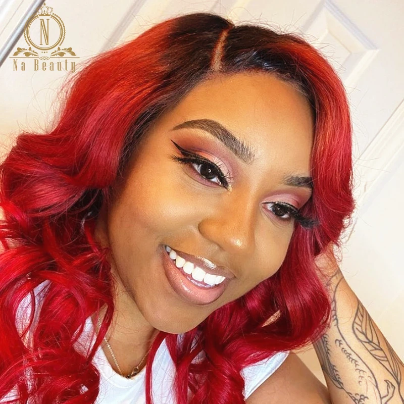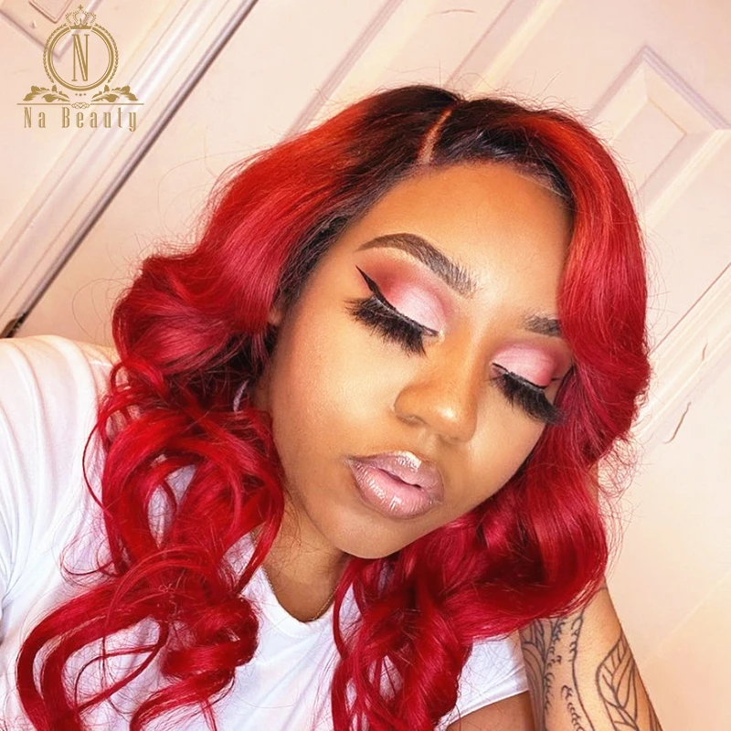 Омбре, красный цвет, парик, объемная волна, прозрачные кружевные передние человеческие волосы, парики, предварительно выщипанные кружевные парики для черных женщин, Remy Na Beauty