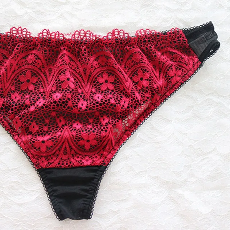 Комплект женского нижнего белья, однотонный винно-красный кружевной...