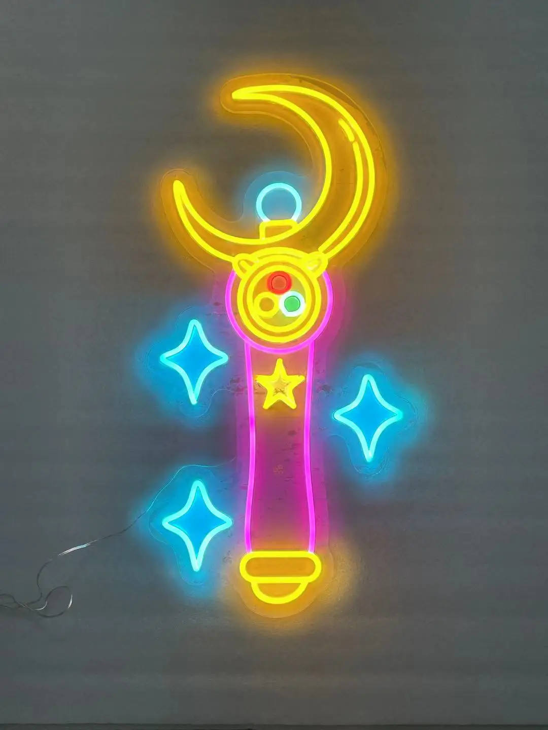 Персонализированная Магическая палочка Сейлор Мун Аниме светодиодная кавайная неоновая вывеска светильник декор для помещений настенная Подвеска подарок девочке День рождения домашняя комната спальня