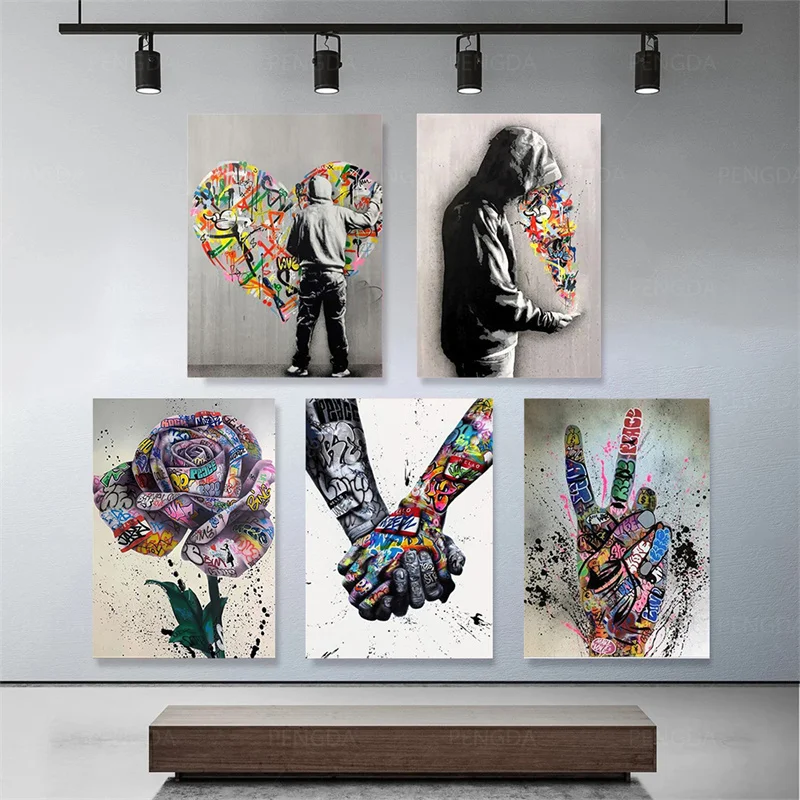 Граффити парные руки розы улица настенное искусство канкас принты живопись известная Бэнкси Классическая картина домашний Настенный декор плакат