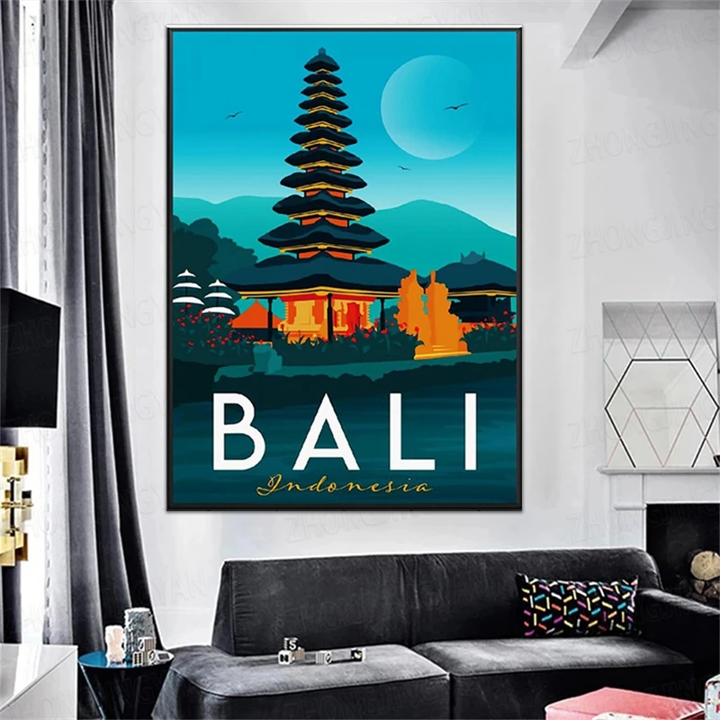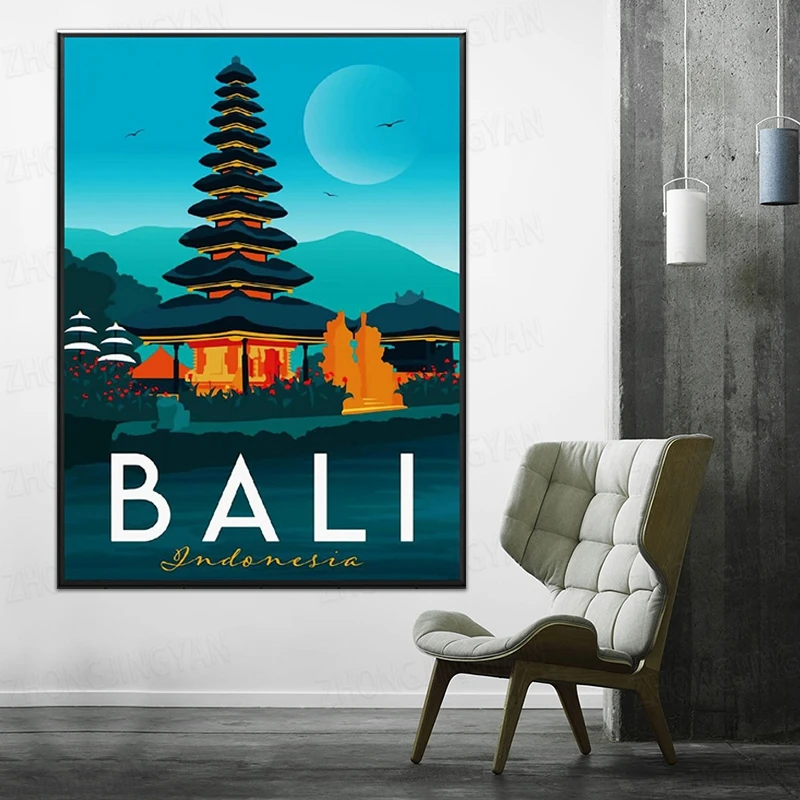 Настенный плакат с Бали на холсте, современный минималистичный декор для спальни, гостиной