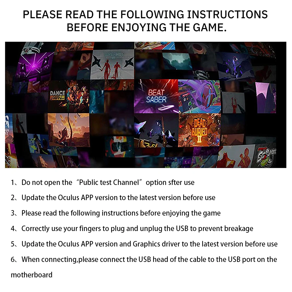 ОписаниеКабель для быстрой зарядки VR поставляется с высокоскоростной передачей данных и быстрой зарядкой, что экономит время для зарядки и синхронизации.USB-C шнур данных разработан с разъемом 90 градусов, идеально защищая концы кабеля от деформации или поломки.Кабель для передачи данных предназначен для замены Oculus Quest/for Quest 2, идеально подходит для устройств, без изменений.Линия передачи данных VR является легкой и компактной, легко носить с собой в сумке, когда не используется, не занимает много места.Зарядный шнур имеет длину 16 футов, что позволяет пользователям свободно двигаться во время игры, удобно и практично.ПараметрыРазмер (длина кабеля): около 5 м/16 футов.Цвет: черный и серый.Совместимое устройство: ПК.Usb-порт: USB Type A-C.Скорость передачи данных: 5 Гбит/с.Совместимость:Замена для Oculus Quest/Quest 2 (не совместима с другими моделями).ПримечаниеИз–за разных компьютерных разрешений может быть небольшое цветовое искажение.Возможны незначительные погрешности из-за различных ручных измерений.Упаковка включает:1 * кабель.
