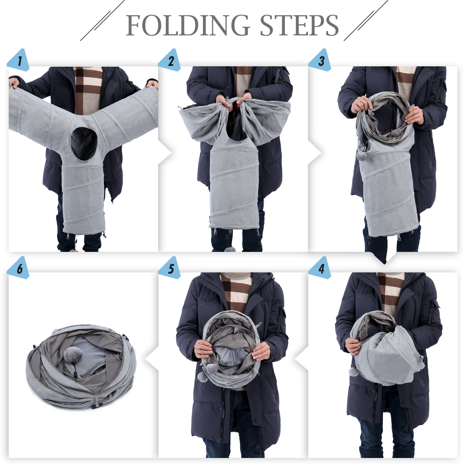 Туннель для кошек, игрушка для домашних питомцев, гофрированная складная игрушка для кошек с подвесным шариком, забавная игра для котят, кроликов, домашних животных, серый