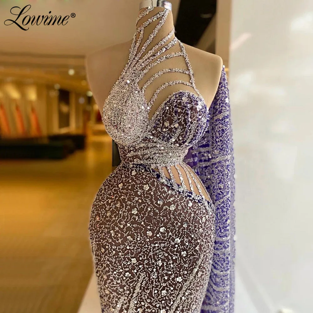 Женское вечернее платье с юбкой-годе Lowime, длинное фиолетовое платье на одно плечо, украшенное бисером, свадьба размера плюс, арабские платья для вечеринок, 2021