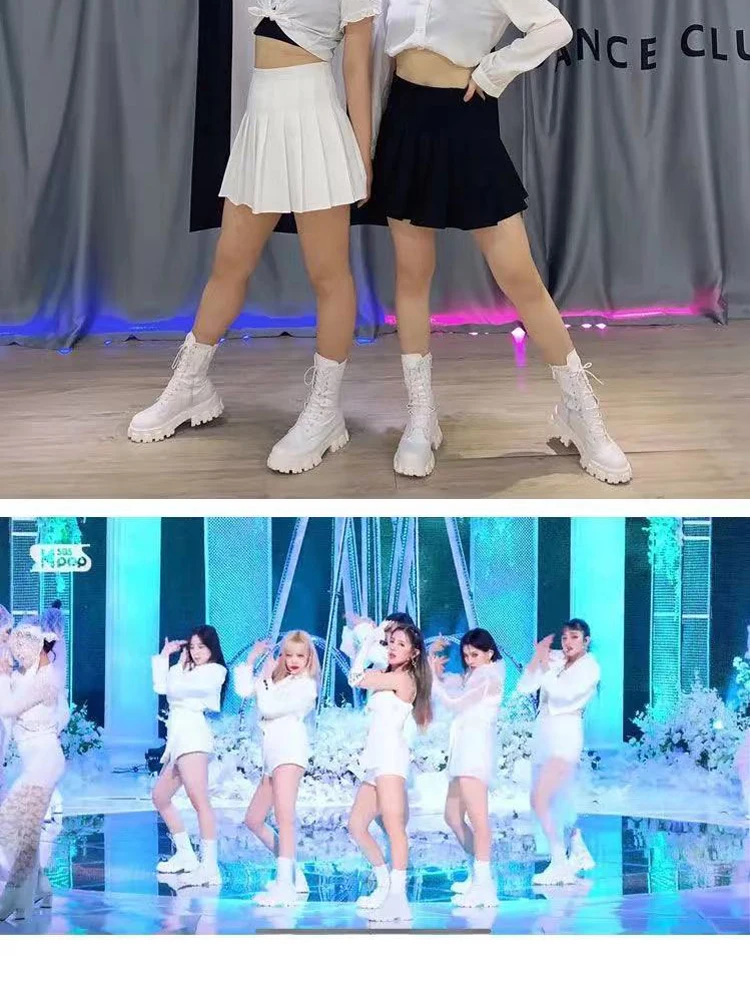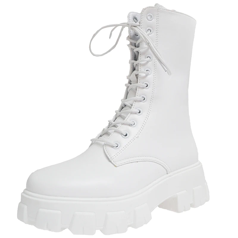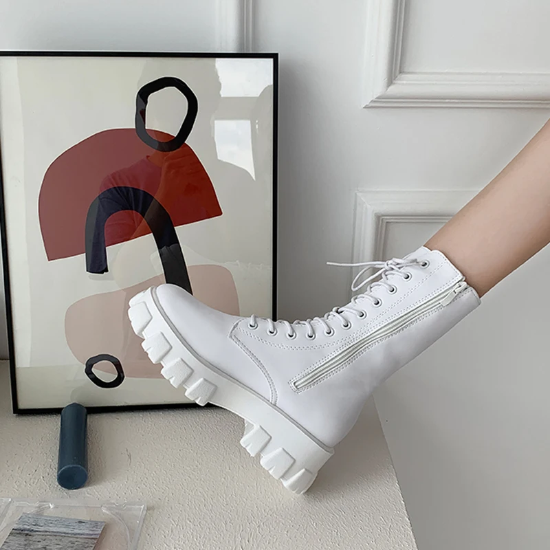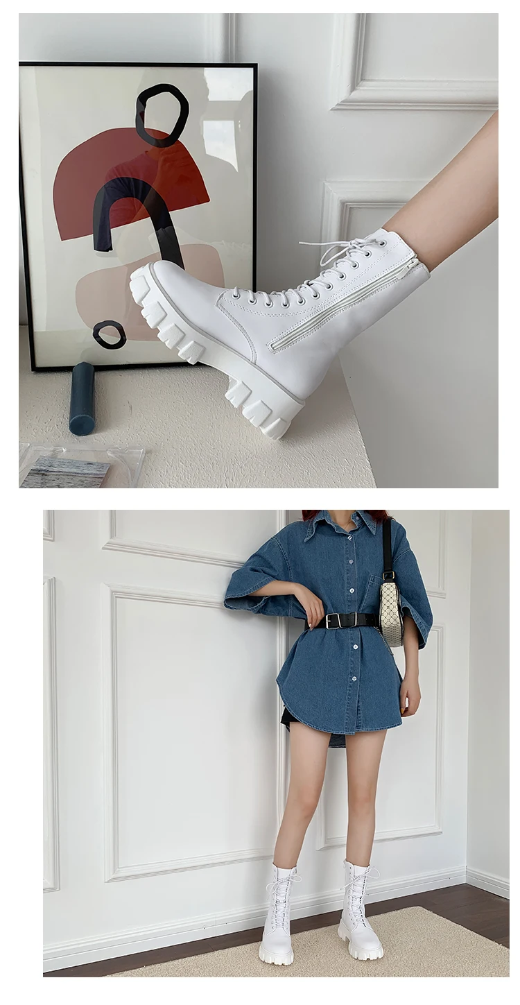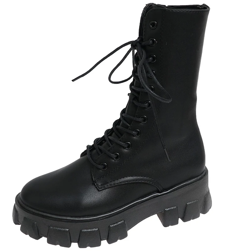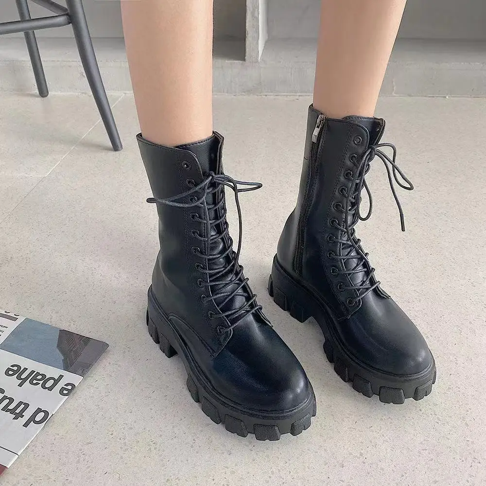2021 на платформе обувь с толстыми подошвами, ботинки до середины голени Обувь На Шнуровке; Полусапожки; Сезон осень-зима обувь в стиле ретро; Удобные ботинки обувь из Pu искусственной кожи