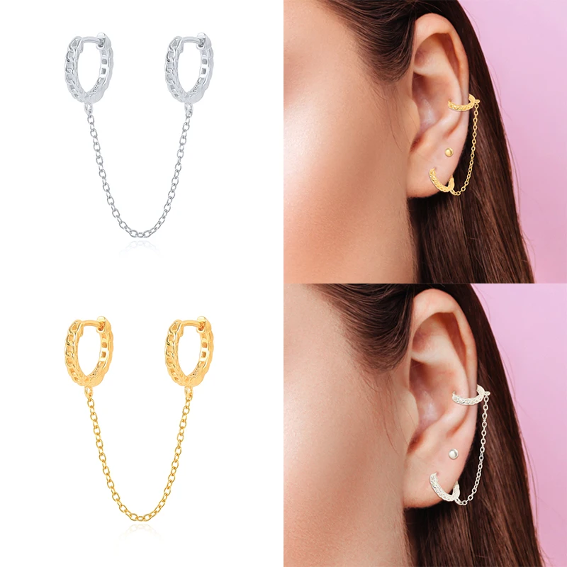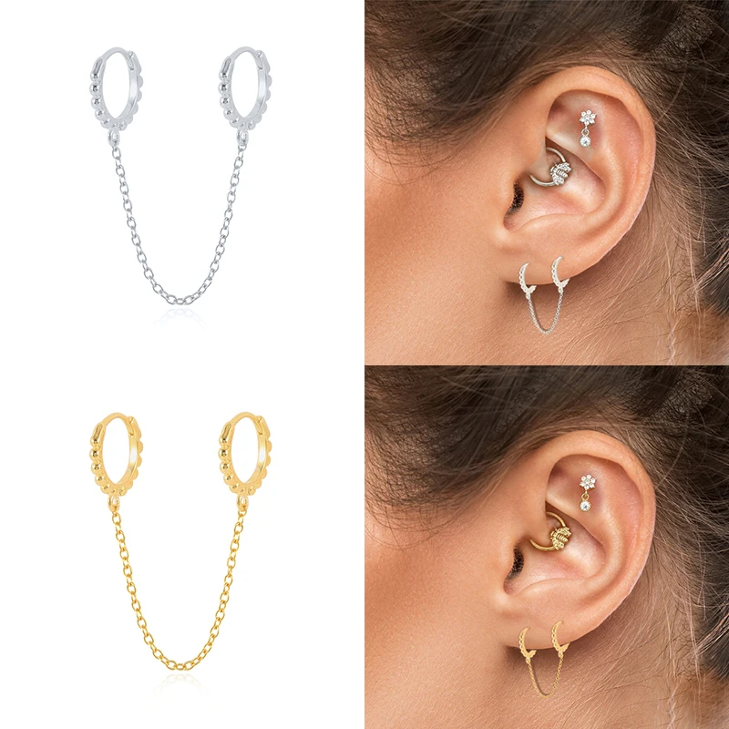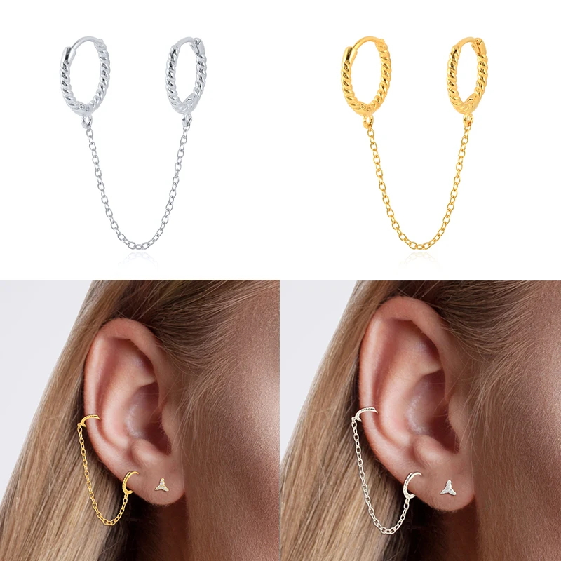 925 пробы серебряные серьги-кольца с двойным отверстием, круглые серьги-кольца, циркониевая Луна Звезда, подвеска с молнией, серьги для пирсинга Huggie