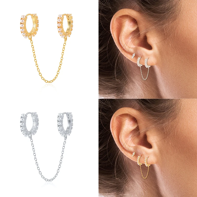 GS 925 стерлингового серебра с двойным отверстием цепочка кольцо с кисточкой, серьги для женщин, белый циркон жемчужные бусы круг серьги-обручи ювелирные изделия