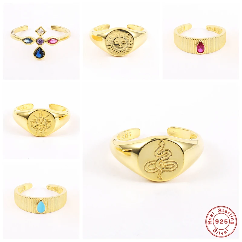 925 пробы серебряные круглые толстые Открытые Кольца для женщин Sun Snake Portrait Pattern циркон крест кольца, рок, Панк ювелирные изделия