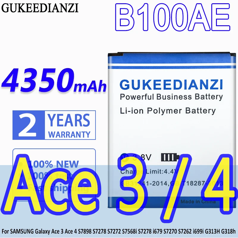 Аккумулятор GUKEEDIANZI B100AE 4350 мАч для SAMSUNG Galaxy Ace 3 Ace 4 S7898 S7278 S7272 S7568i S7278 I679 S7270 S7262 I6
