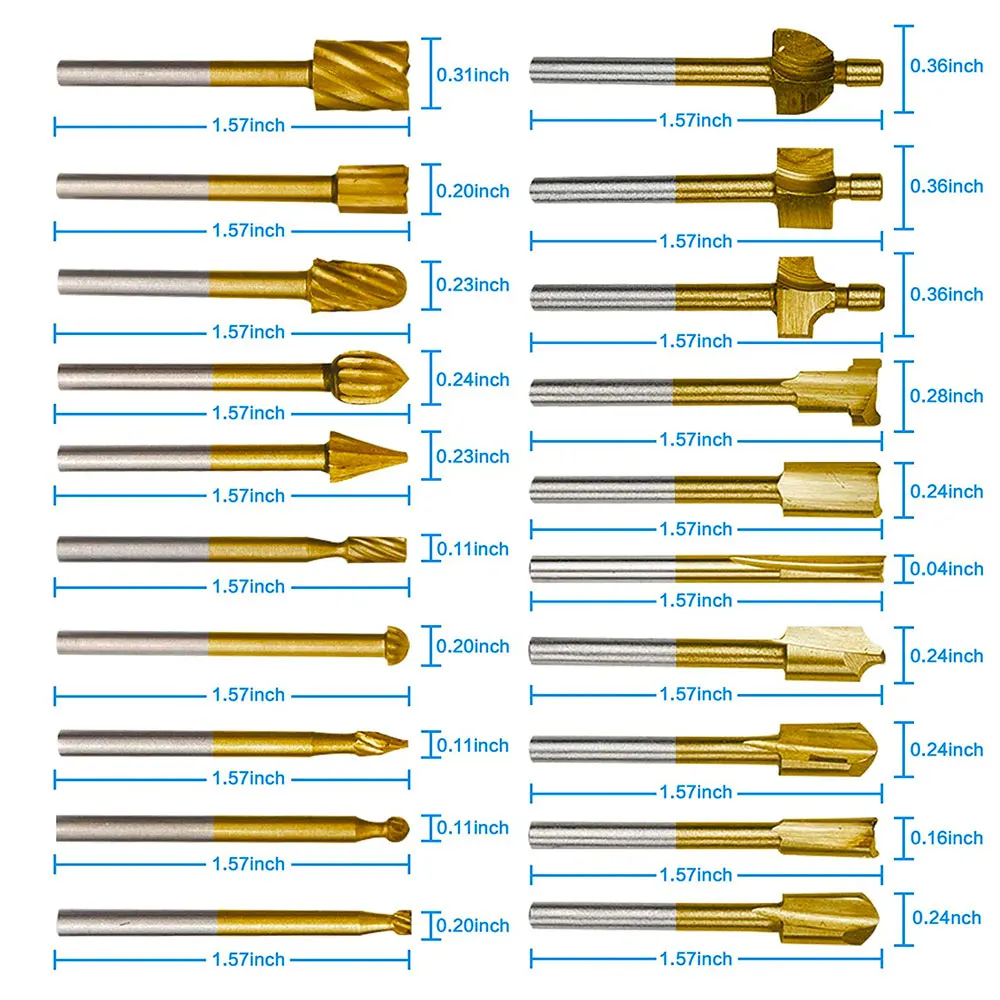 BINOAX 20 шт. фреза, фреза для дерева и дерева, аксессуары для роторных инструментов, резьба по дереву, резка ножей
