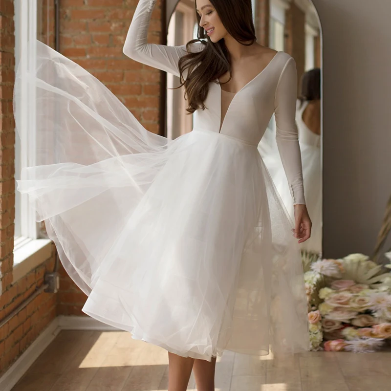 Индивидуальный заказ размеры и Цвет Короткие Арабский один рукав с открытой спиной Свадебные платья Свадебное платье из тюля бальное платье Чай Длина свадебное платье