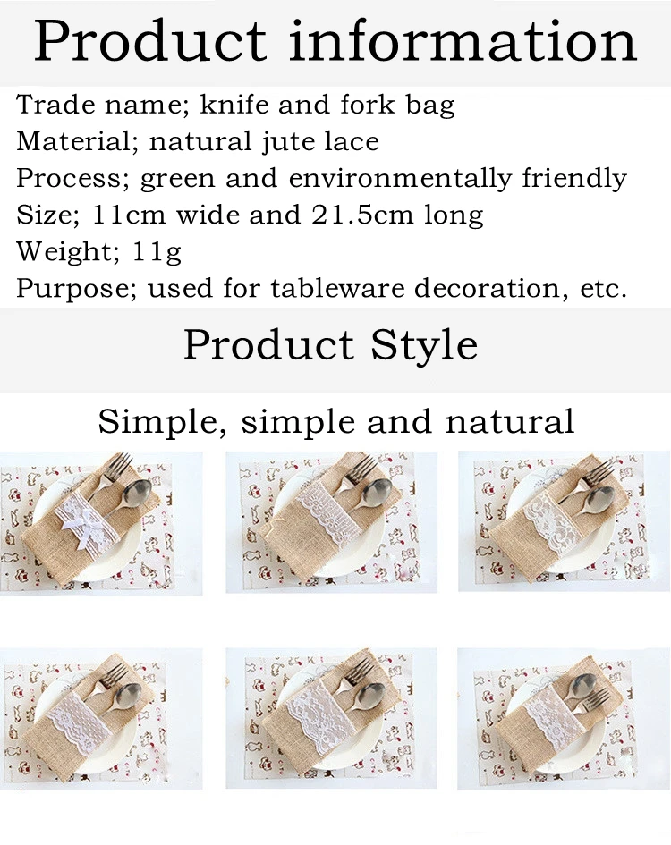 Название: нож и чехол для вилок из мешковиныМатериал: конопляСпецификация: 11*21,5 смНазначение: льняное кружево в европейском стиле сумка для посуды, модный стиль, различные стили, украшение стола используется для, Поместите ножи и вилки, добавьте тепла вашей столовой,
