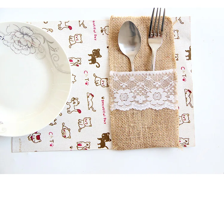 10 шт., винтажные джутовые держатели для ножей и вилок, из мешковин...