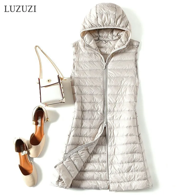 LUZUZI осенне-зимний новый легкий тонкий пуховик женский пуховый жилет с капюшоном Женский жилет средней длины пальто парки размера плюс 4XL