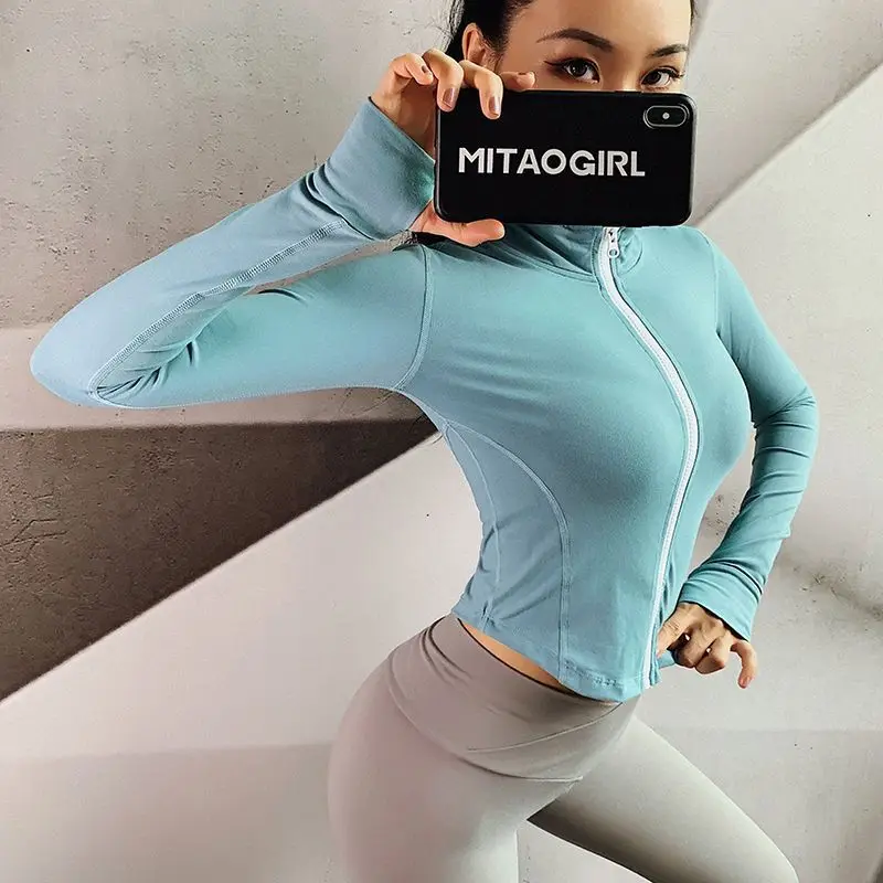 Осенне-зимняя женская куртка для бега, на молнии, облегающая, стрейчевая, быстросохнущая, одежда для йоги, тренировочная, для фитнеса