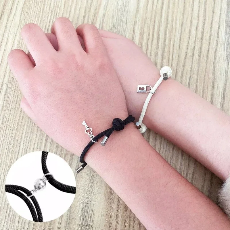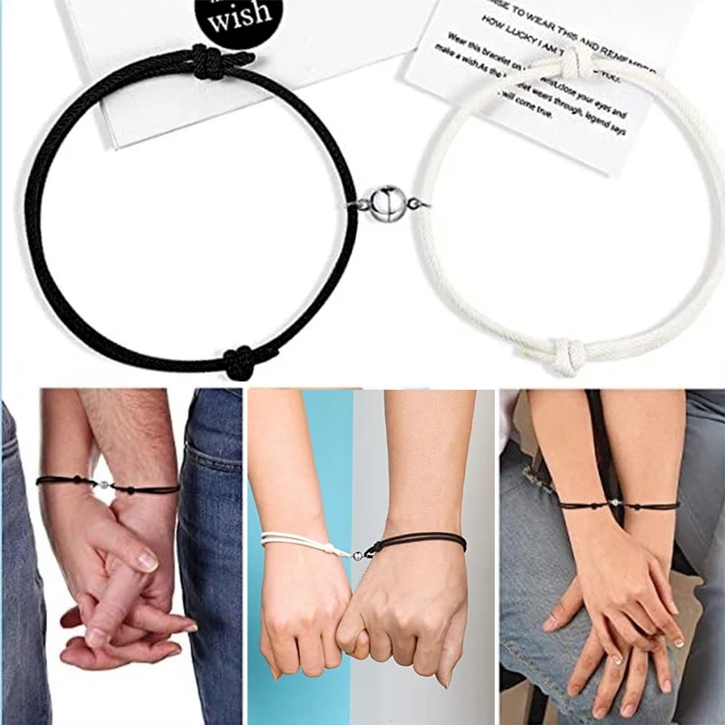 Лидер продаж, 2 шт., магнитный браслет для пар, браслет ручной работы, регулируемый веревочный неограниченный браслет для влюбленных, на удачу, черный и белый подарок