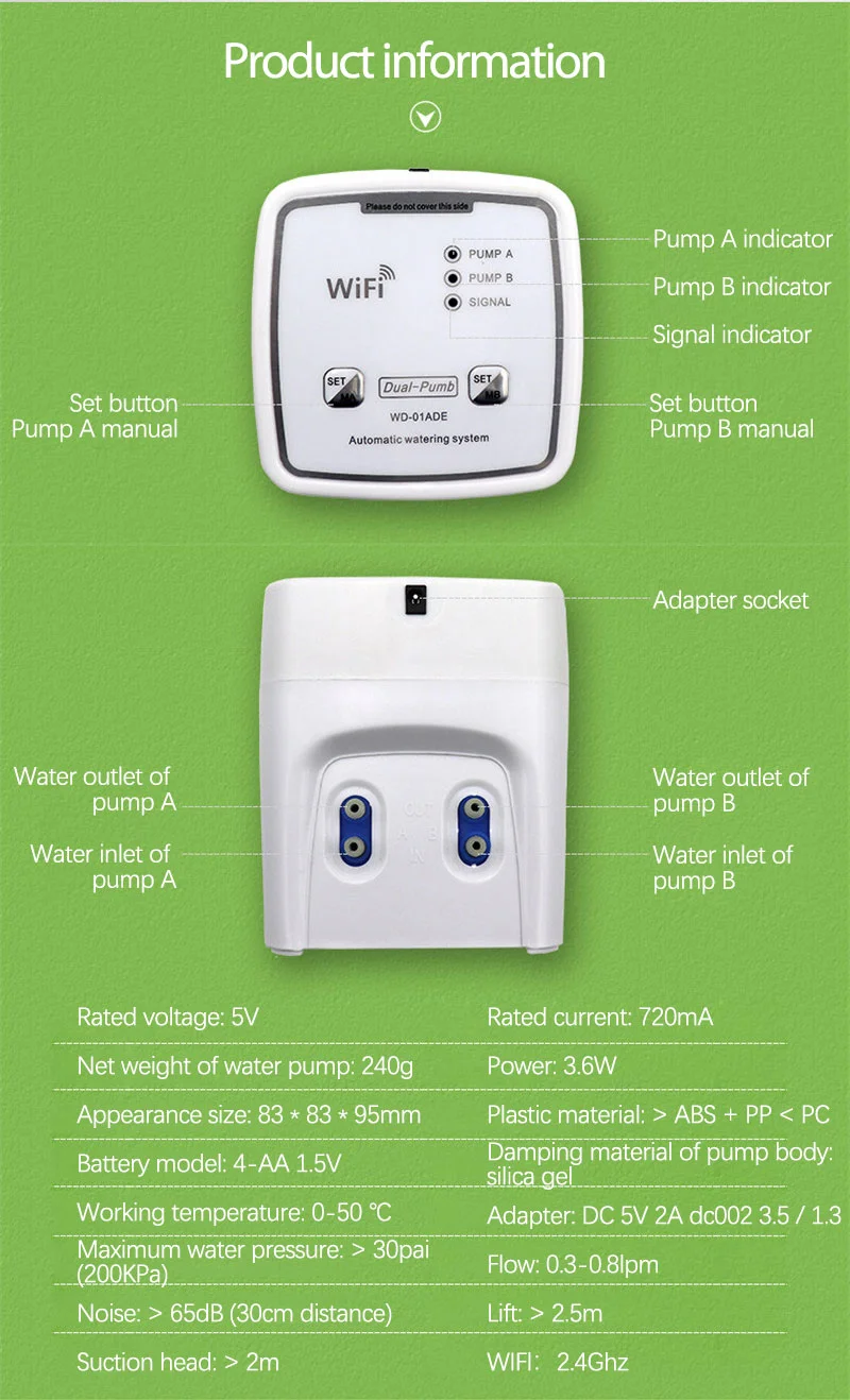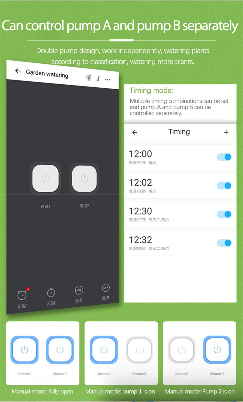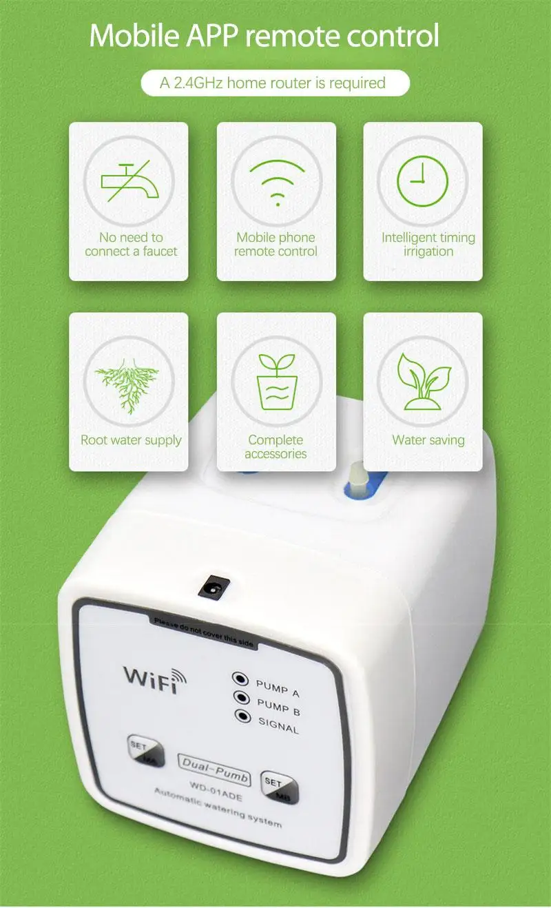 Умное устройство для полива растений, система капельного орошения с Wi-Fi, автоматический контроллер с таймером, двойной насос