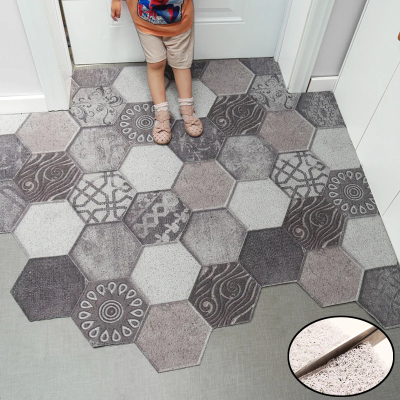 Коврик для прихожей с шелковой петлей, входной шестигранный безразмерный, устойчивый к пятнам, для удаления грязи, коврик для дома, ковровое покрытие