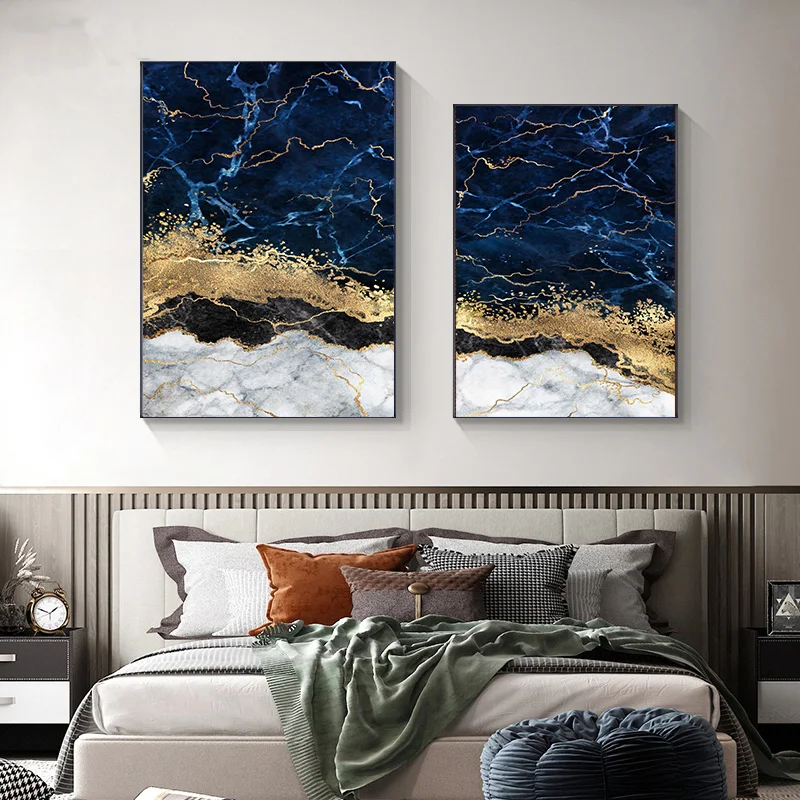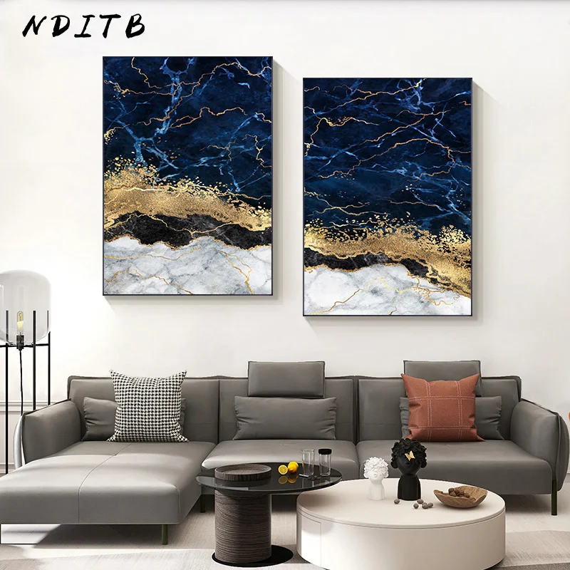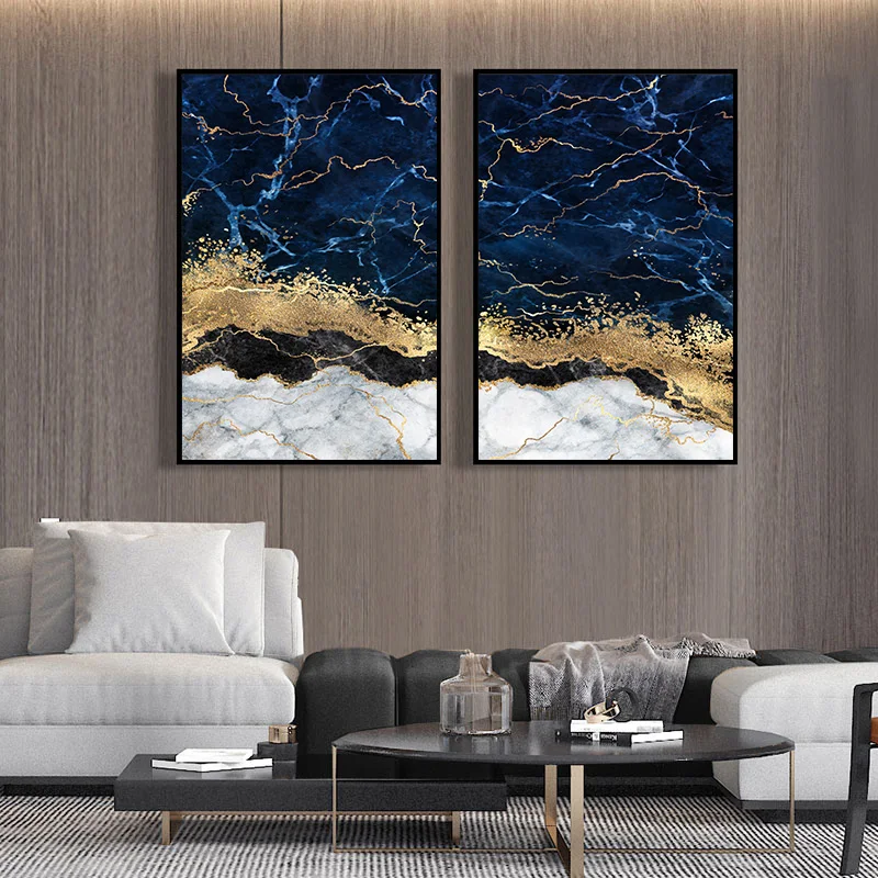 Роскошный постер на холсте в скандинавском стиле, золотистый, синий, Мраморный Настенный принт, современная абстрактная картина, Современное украшение для комнаты и дома