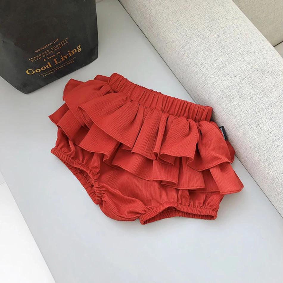 Короткие брюки с оборками для новорожденных девочек, летние шаровары для подгузников, большие штаны из ПП, JYF