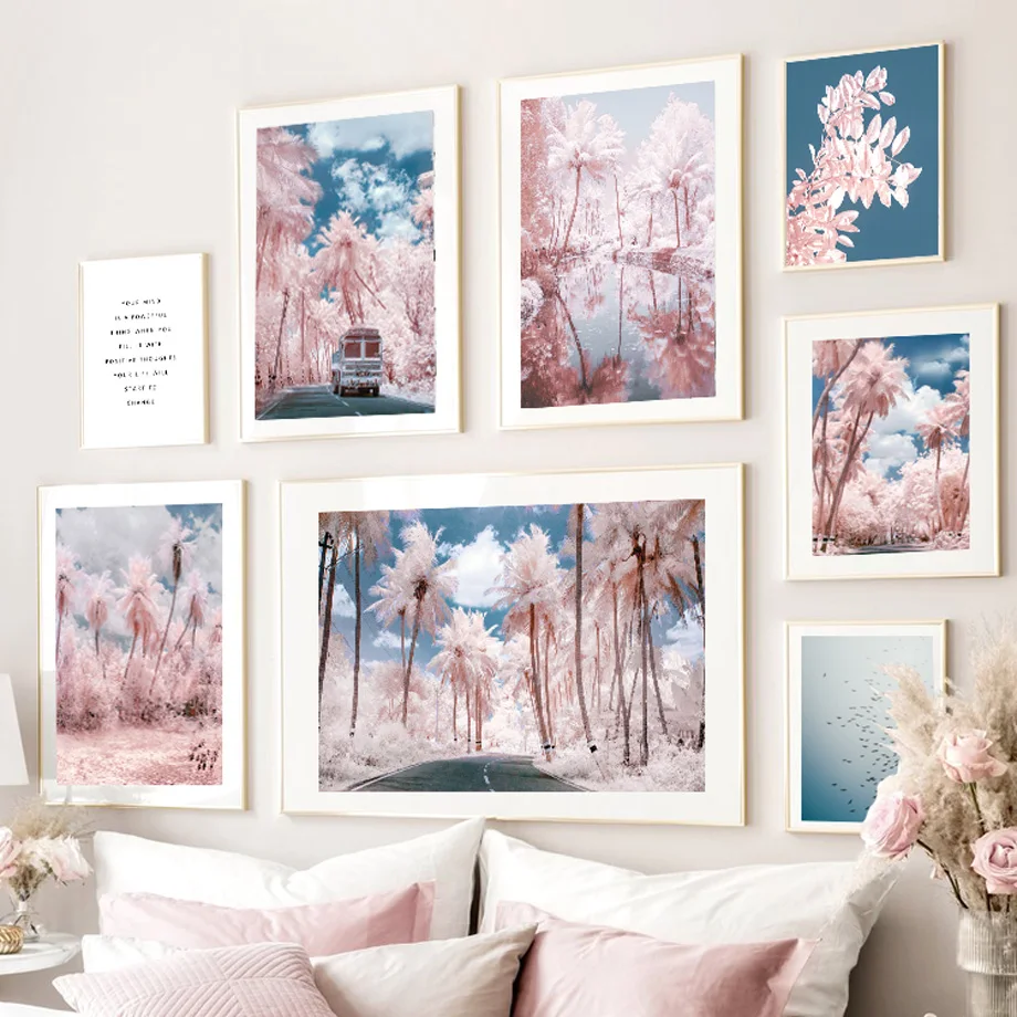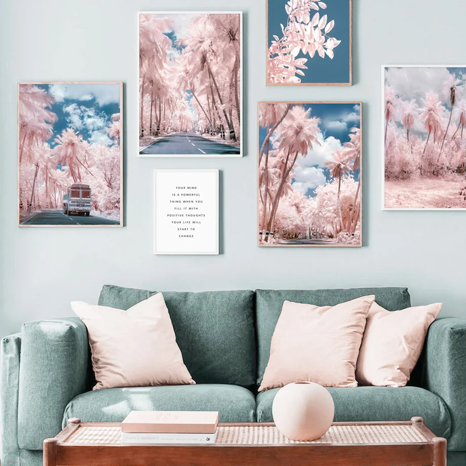 Пейзаж океана кокосовое дерево розовая пляжная настенная Картина на...