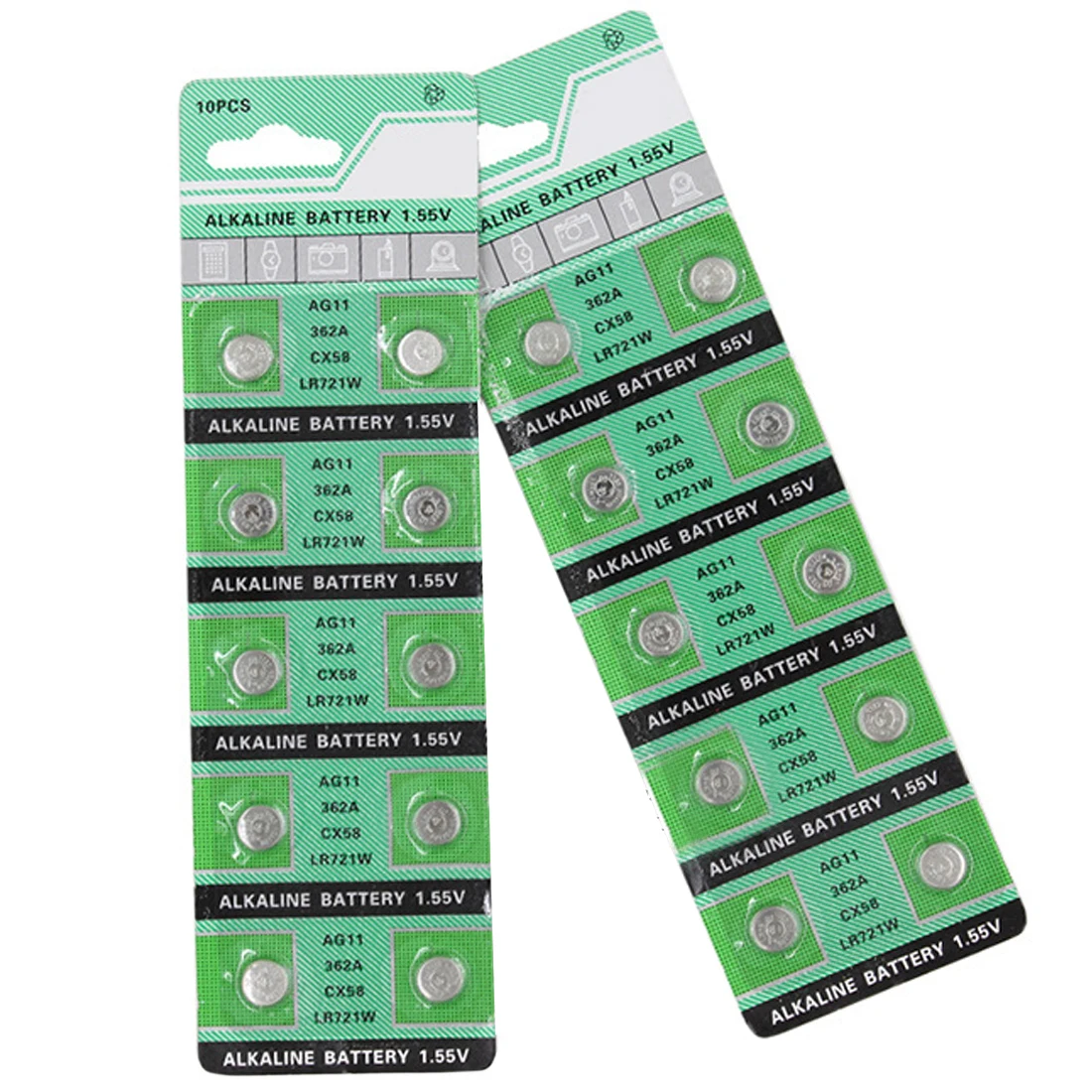 10 шт./упак. AG11 LR721 362 аккумуляторы таблеточного типа SR721 162 ячейки щелочной Батарея 1,55 V для мобильного часо-игрушки пульт дистанционного управления