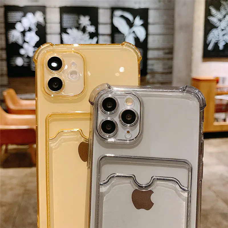 Прозрачный чехол-бумажник для телефона с отделением для карт для iPhone 12 11 13 Pro Max XS XR X 7 8 Plus, однотонный противоударный чехол-накладка с отделением для кредитных карт