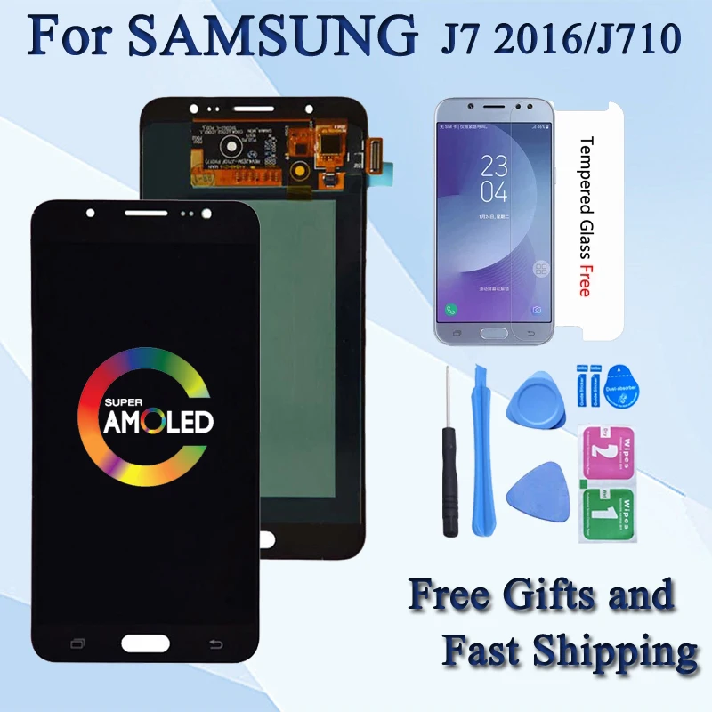 Amoled для Samsung Galaxy J7 2016 J710 SM-J710F J710M J710H J710FN ЖК-дисплей с сенсорным экраном дигитайзер в сборе Бесплатная доставка