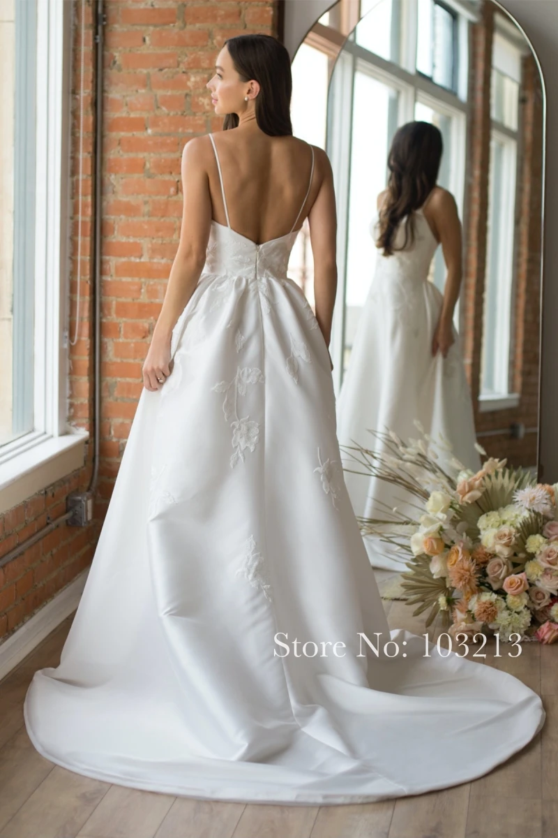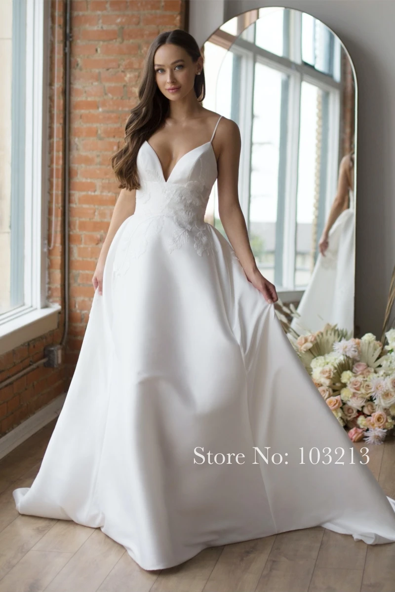 Женское атласное платье с вышивкой, сексуальное ТРАПЕЦИЕВИДНОЕ платье на бретелях-спагетти в богемном стиле, недорогое свадебное платье до пола, 2021