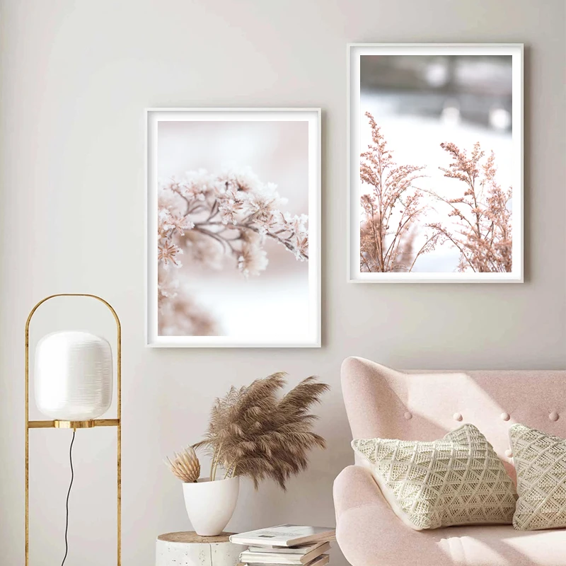 Настенная картина в скандинавском стиле с изображением розового пля...