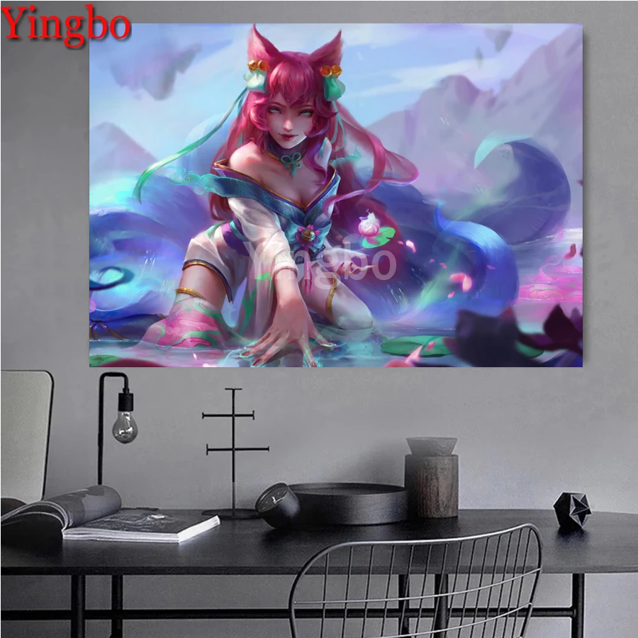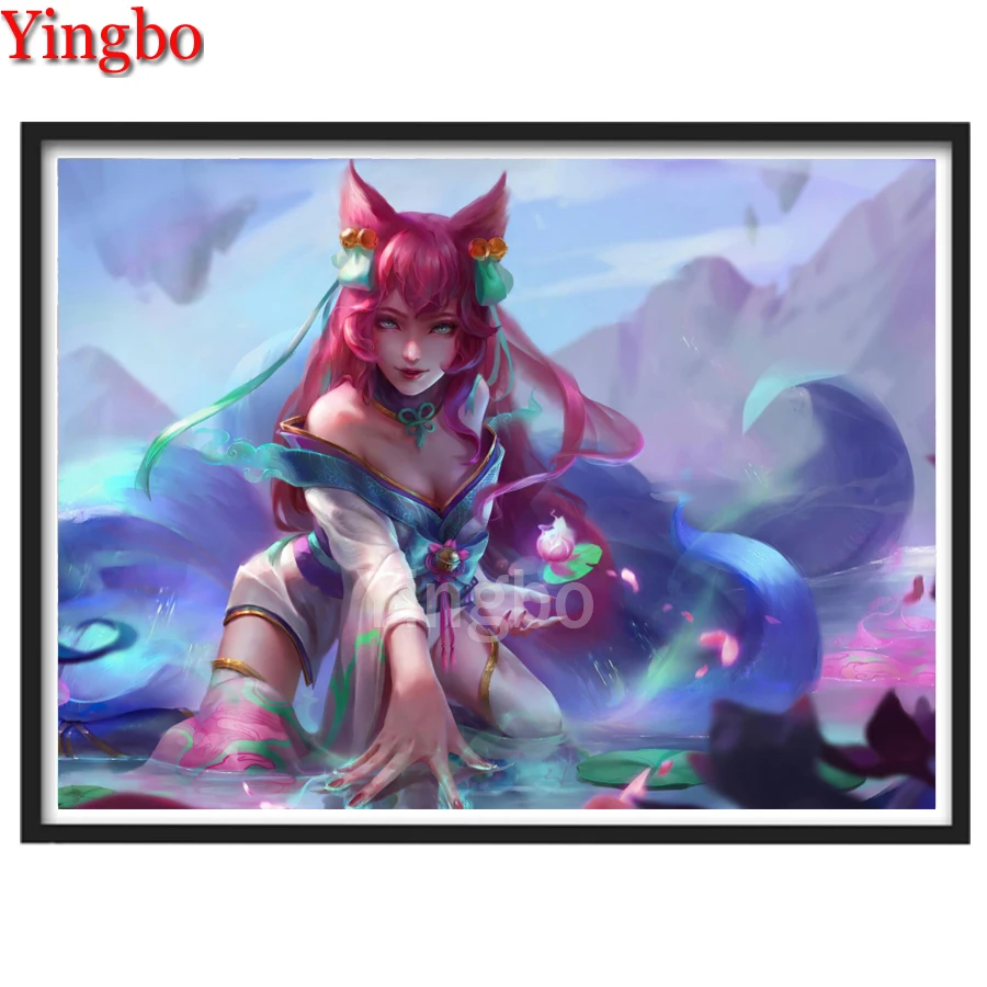 Полноразмернаякруглая алмазная живопись 5D сделай сам, вышивка крестиком, мультяшная девушка, девять хвостов, лиса, Сказочная вышивка, алмазная 5D домашний декор