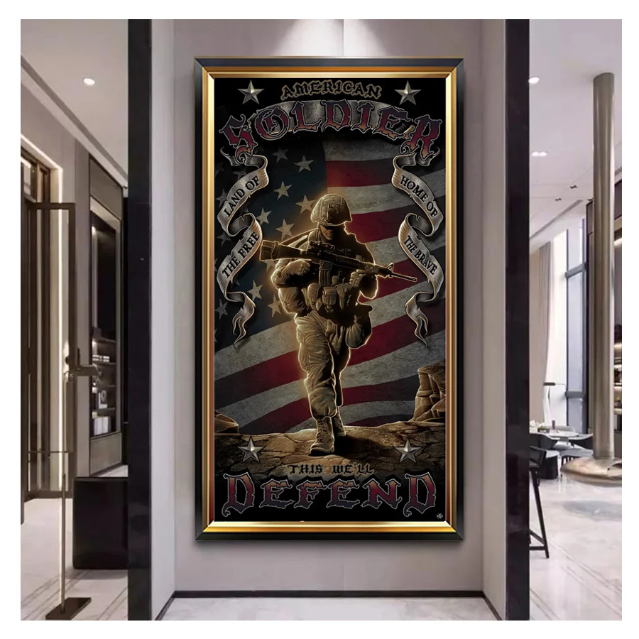 Набор для вышивки крестиком сделай сам, 5D военный американский флаг, солдат, полноразмерная картина, живописный 3D-рисунок алмазами, домашний декор