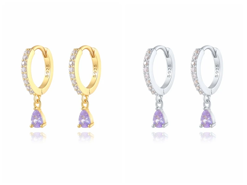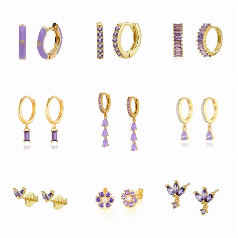 Серьги серьги с фиолетовым цирконием, предотвращающие аллергию Хрящевые круглые серьги, роскошные посеребренные серьги-капельки, ювелирная серьга