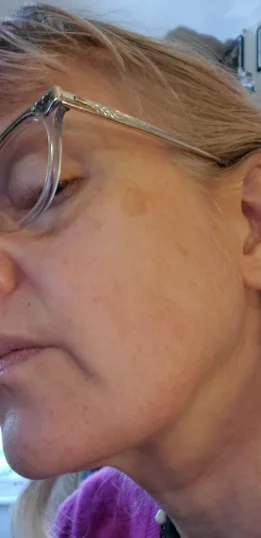 На линии подбородка с одной стороны моего лица есть темные пятна. Я пробовал много OTC продуктов, rx гидрохинолон, много IPL процедур и различных домашних процедур. Нет никакой разницы. Я решили попробовать этот продукт, но я действительно не ожидал, что он будет работать. Менее чем за месяц, маленькие возрастные пятна были почти не видны. Самый большой/Самый темный значительно легче. Я планирую продолжать использовать этот продукт, чтобы увидеть, будет ли он светиться больше. В целом я очень доволен этим продуктом.