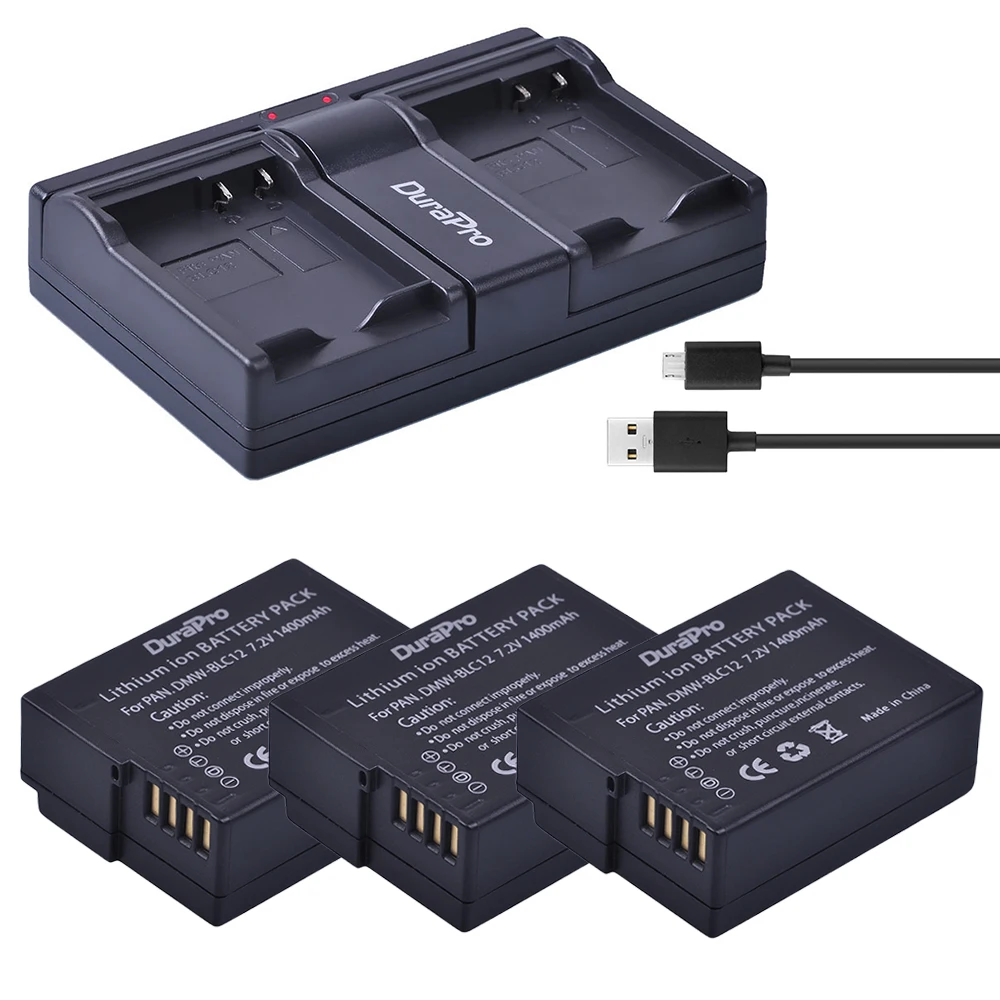 3 шт. 1400 мАч, DMW-BLC12 DMW-BLC12E BLC12 Батарея + USB Dual Зарядное устройство для цифрового фотоаппарата Panasonic Lumix FZ1000,FZ200,FZ300,G5,G6,G7,GH2,DMC-GX8