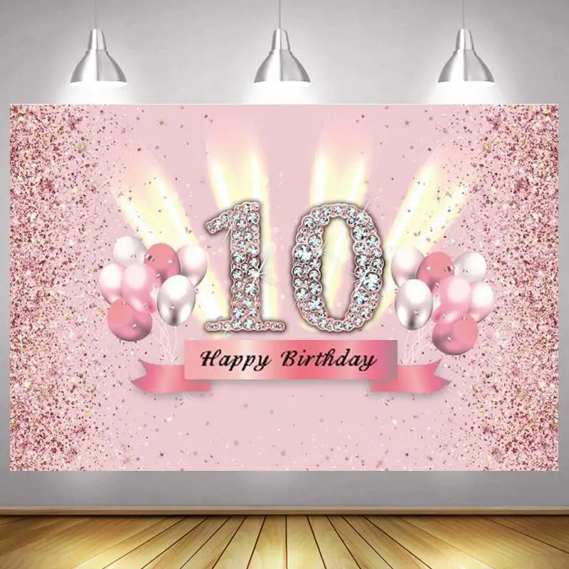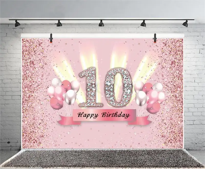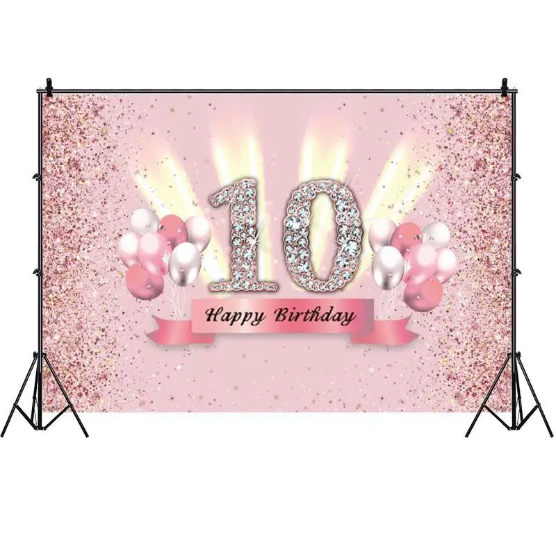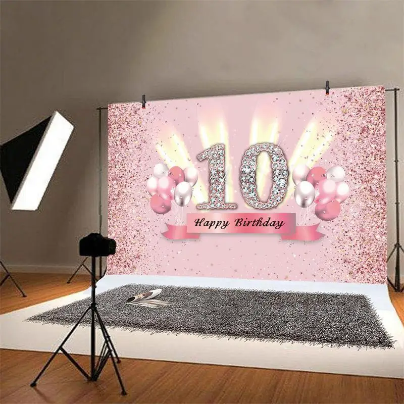 Розовый милый фон для фотосъемки 10 дней рождения десять девушек фоны для фотосъемки воздушный шар баннер