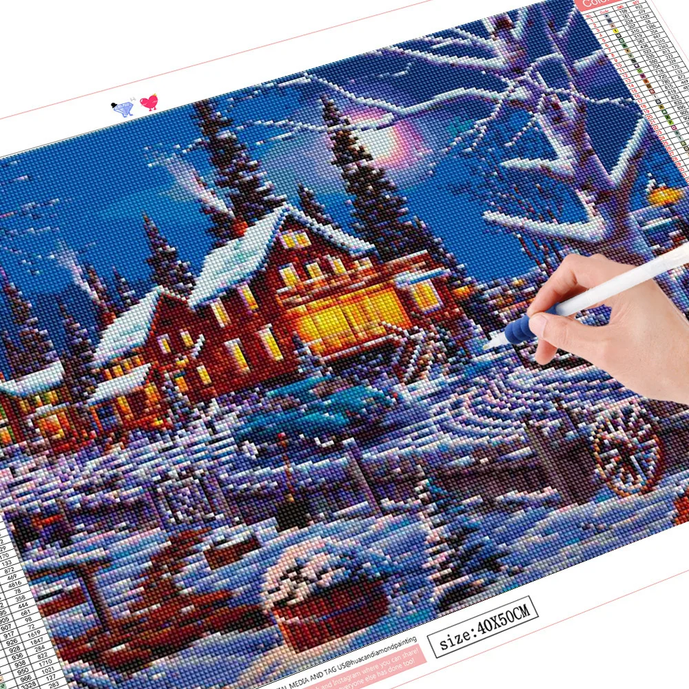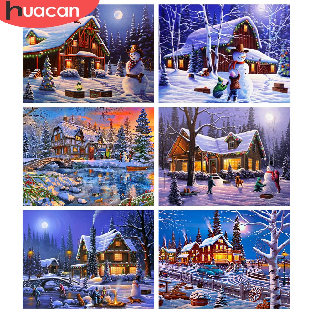 Алмазная 5d живопись HUACAN, полноразмерная мозаика для дома, зимний Декор сделай сам, вышивка стразами, пейзаж, ручная работа