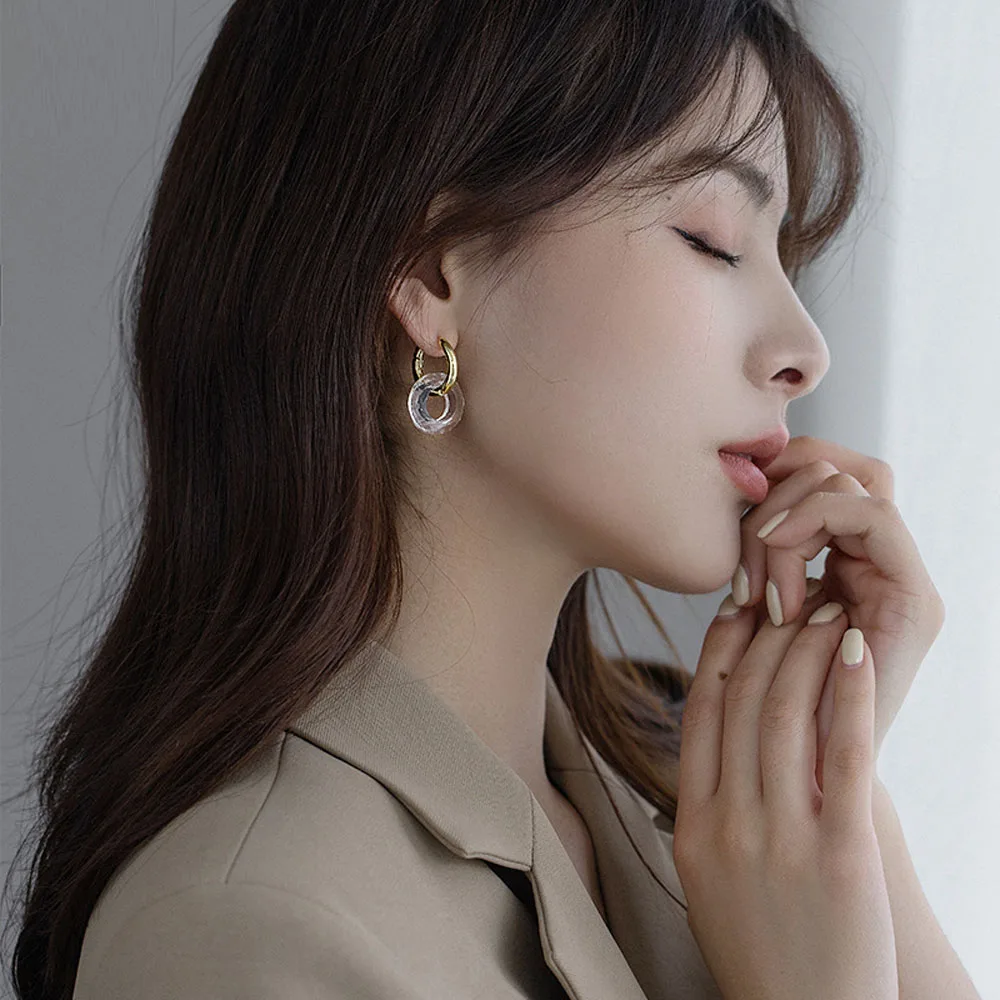 Модные корейские элегантные металлические серьги-кольца для женщин ...