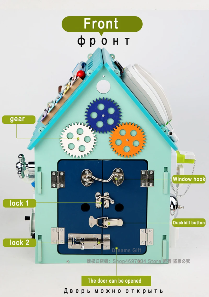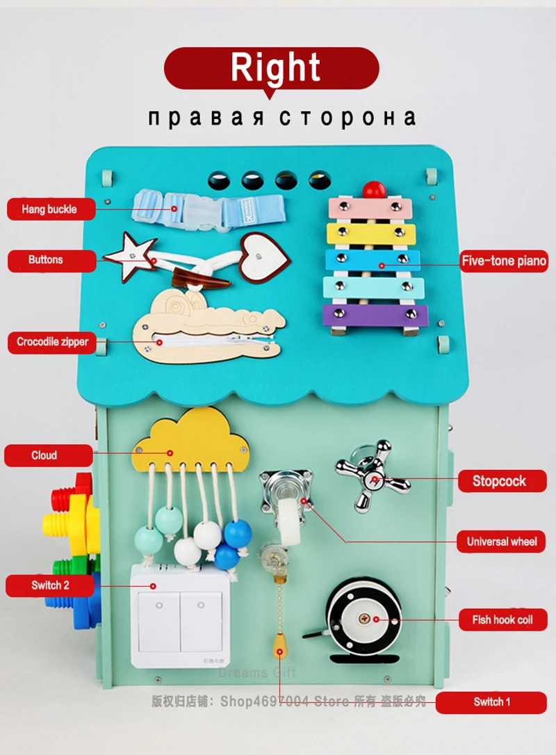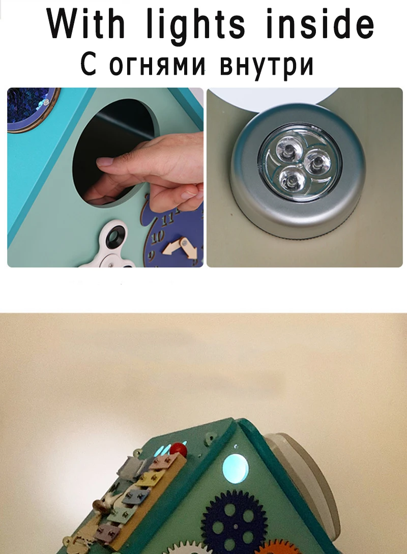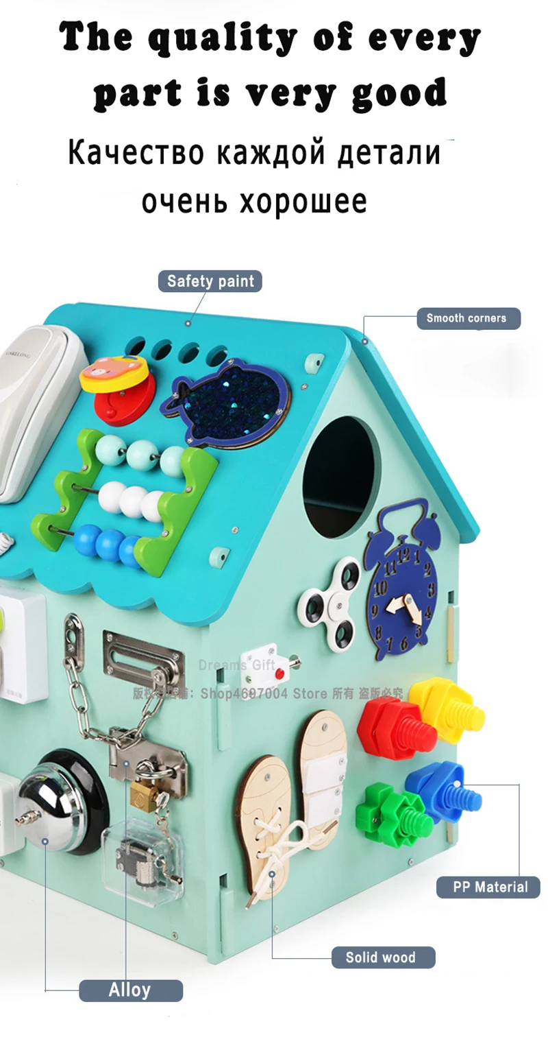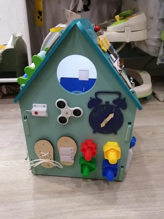 Долго искала бизиборд. В домиках, которые встречались в интернет - магазинах чего-то да не хватало. Решила посмотреть на Алиэкспресс, увидела этот домик и влюбилась в него. В нём есть все развивашки, которые я хотела, ещё он очень яркий, красивый и качественный. Рекомендую к покупке! Нисколько не жалко потраченных денег. Ребёнок будет играть с ним до школы) Старшая сестра сына, ей 10 лет, играет с ним чуть ли не каждый день)))