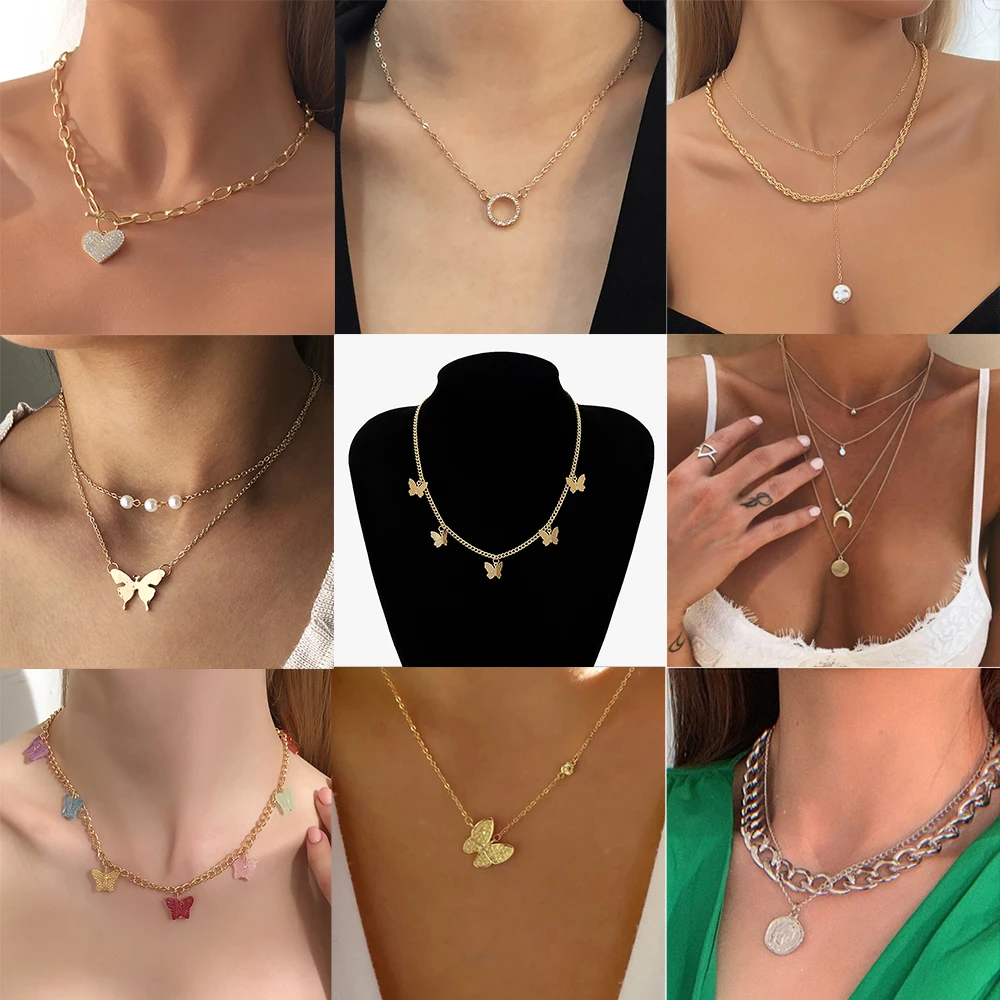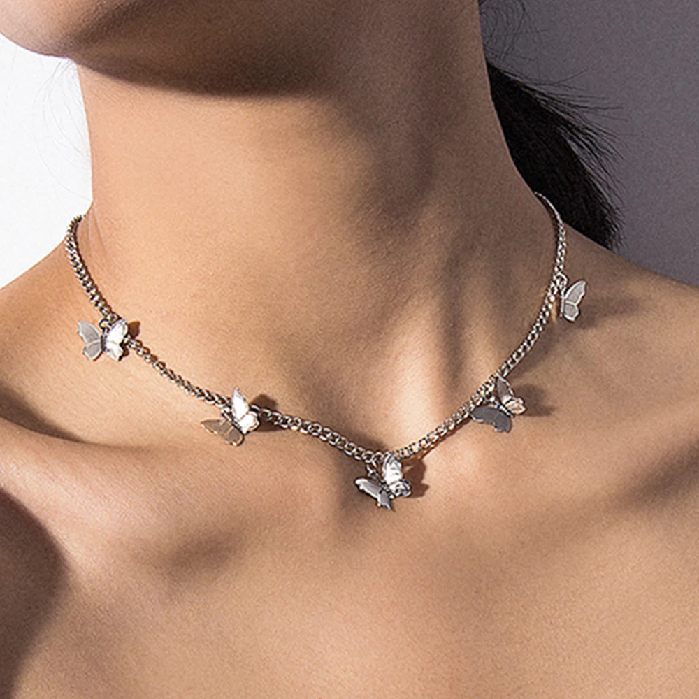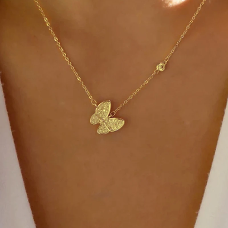 Ожерелье женское на шею, с подвеской в виде сердца и бабочки