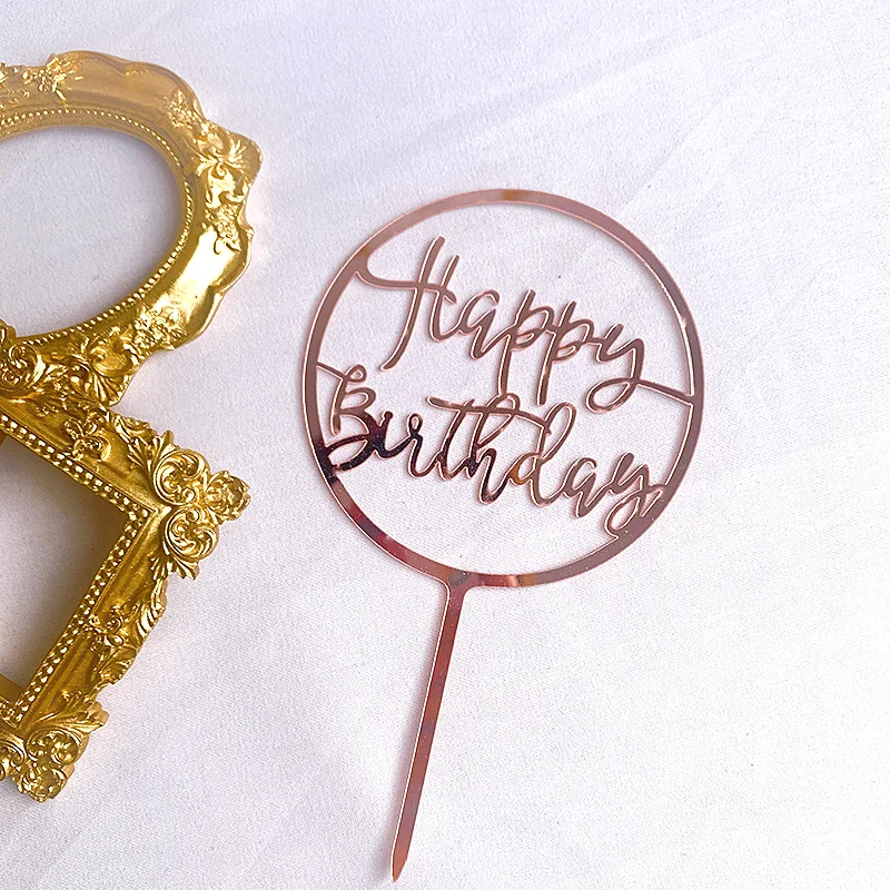 Розовый Золотой Топпер для торта С Днем Рождения Акриловые классиче...