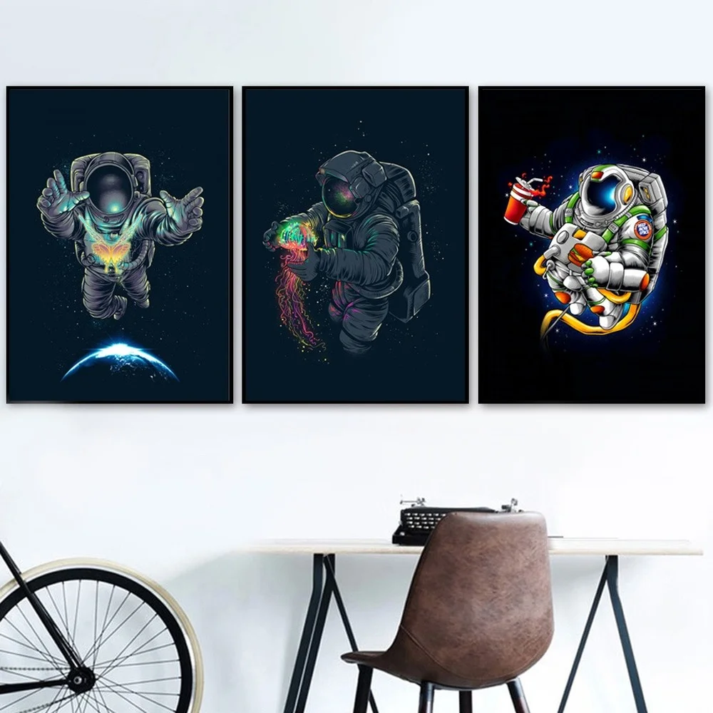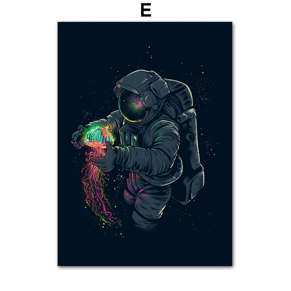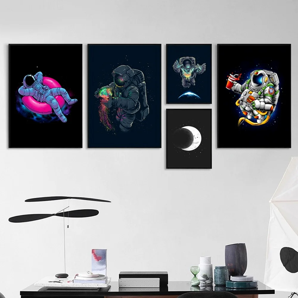 Самоклеящаяся картина, настенная наклейка, мультяшный астронавт, Кит, луна, пианино, скандинавские плакаты, принты, картины, украшение для детской комнаты icon star icon star icon star icon star icon star