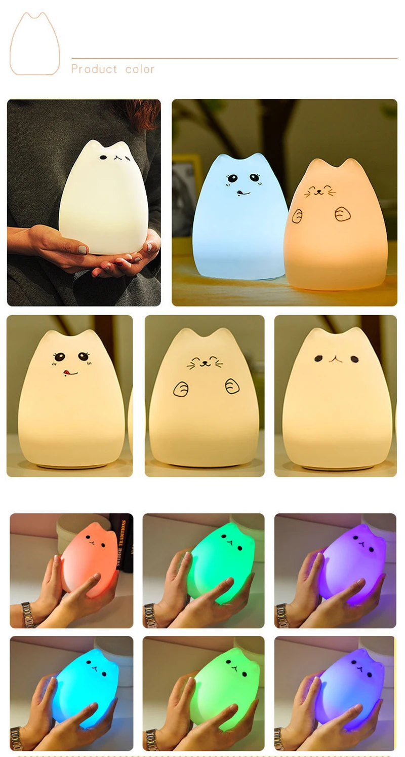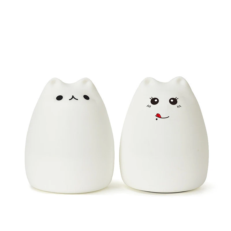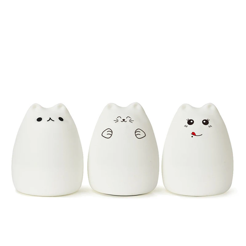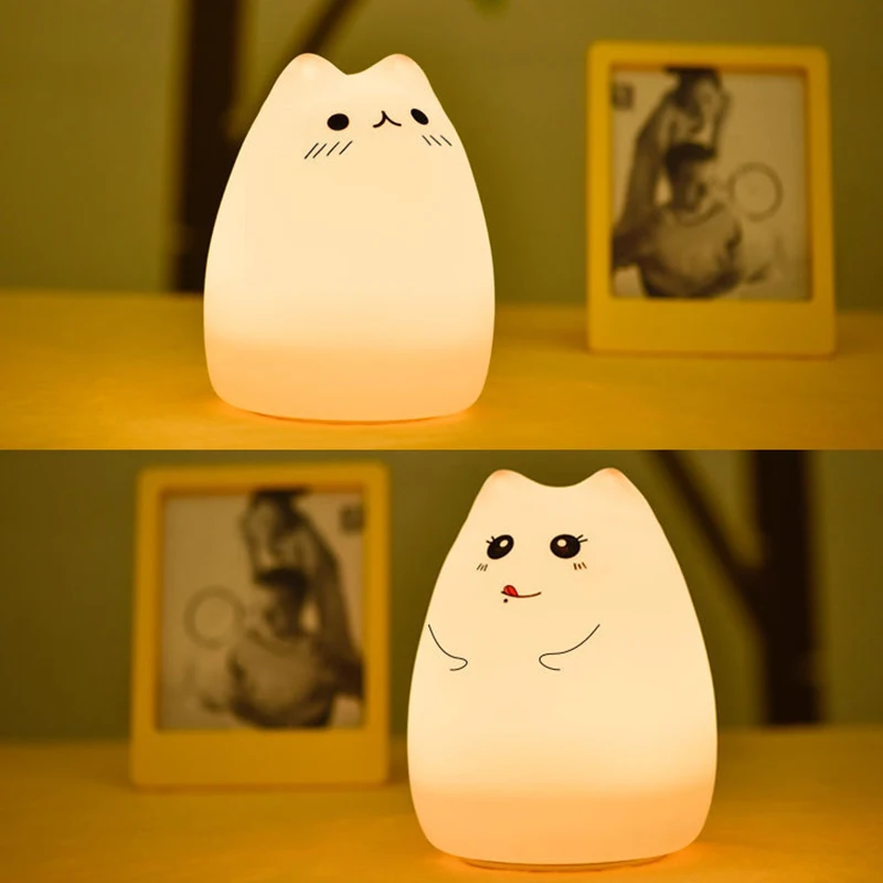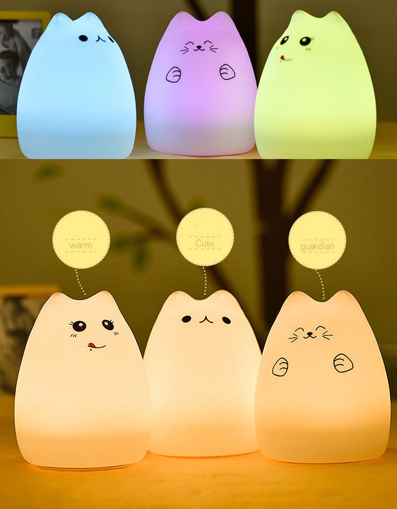 Милый светодиодный ночсветильник, силиконовый сенсорный датчик в виде кошки, 7 цветов, батареяUSB-зарядка, дистанционная Ночная лампа для детей, Детский подарок, украшение для спальни
