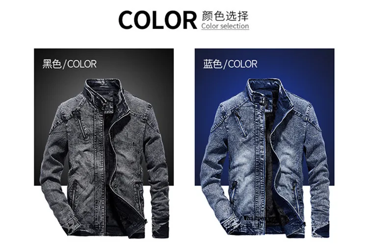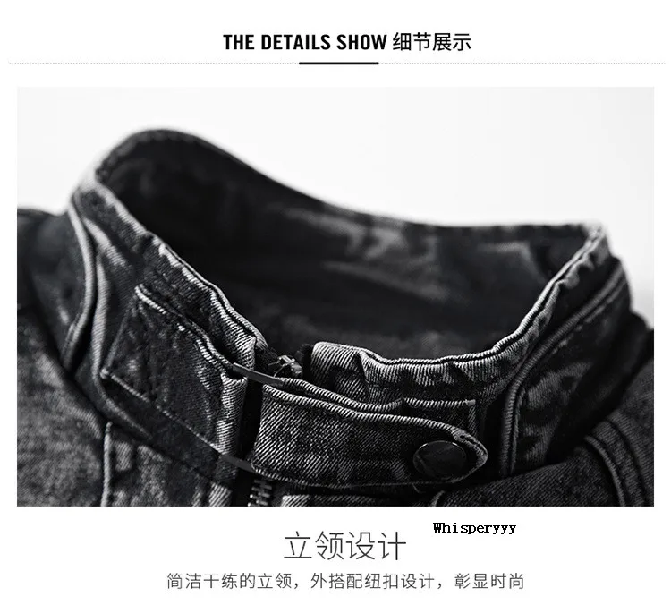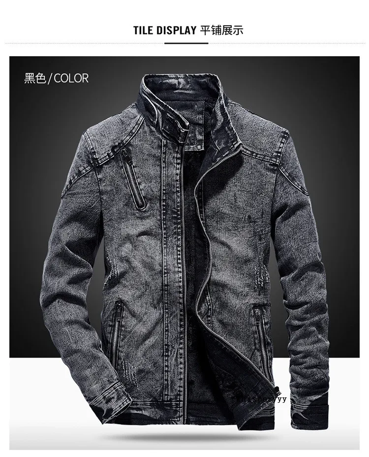 Новая Винтажная Мужская джинсовая куртка, однотонная повседневная мужская джинсовая куртка, модная одежда со стойкой для черного, синего, куртка-бомбер, мужская верхняя одежда