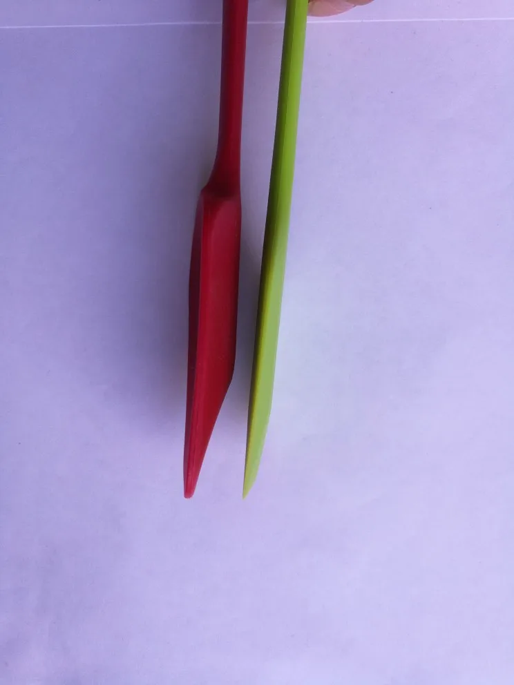 заказывала несколько лопаток, пришли в одной посылке. хорошее качество, запаха нет, не пригорают. размера 21 см достаточно. лопатка в виде ложки плотнее, но зелёная тоже хорошая. с продавцом не общалась.