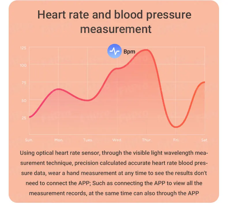 Особенности:Пульс, обнаружение артериального давления, Монитор кислорода в крови, спортивный счетчик шагов (3D датчик), потребление калорий, расстояние движения, связь bluetooth, напоминание о входящем звонке, оповещение о информации, осветление рук, умный будильник, поиск браслета, Дальняя камера, напоминание о долгом сидении, мониторинг сна, информационный сигнал (SMS, Facebook, Twitter, WhatsAPP и т. д.) Чтение информации и т. Д.Описание:▪100% новые и высококачественные▪Дисплей: 1,3 ''/1,44''▪Разрешение: 240*240 пикселей▪IP67 водонепроницаемый▪Тип батареи: литий-полимерный аккумулятор▪Поддержка: для Bluetooth 4,0 и Android4.3 или вышеДля Bluetooth 4,0 и IOS8.0 или выше** Прямая зарядка через USB (этот Смарт-часы не нужен зарядный кабель, просто вытяните ленту, Вы найдете usb-интерфейс. Вы можете подключить его к интерфейсу USB, зарядному устройству на мобильный телефон, интерфейсу USB компьютера и т. д.)Советы:1. Этот продукт может быть только водонепроницаемым (прохладная вода), пожалуйста, не носите его, чтобы плавать, уроните его в воду или замочить в воде и т. Д.2. Когда вы впервые получаете продукт, зарядите его в течение 5-10 минут, если он не может быть включен, потому что он уже низкий на мощности.3. Пожалуйста, не сравнивайте умные часы с больничным оборудованием для чтения, это не медицинское устройство!Список товаров:1 умный Браслет1x Руководство пользователя