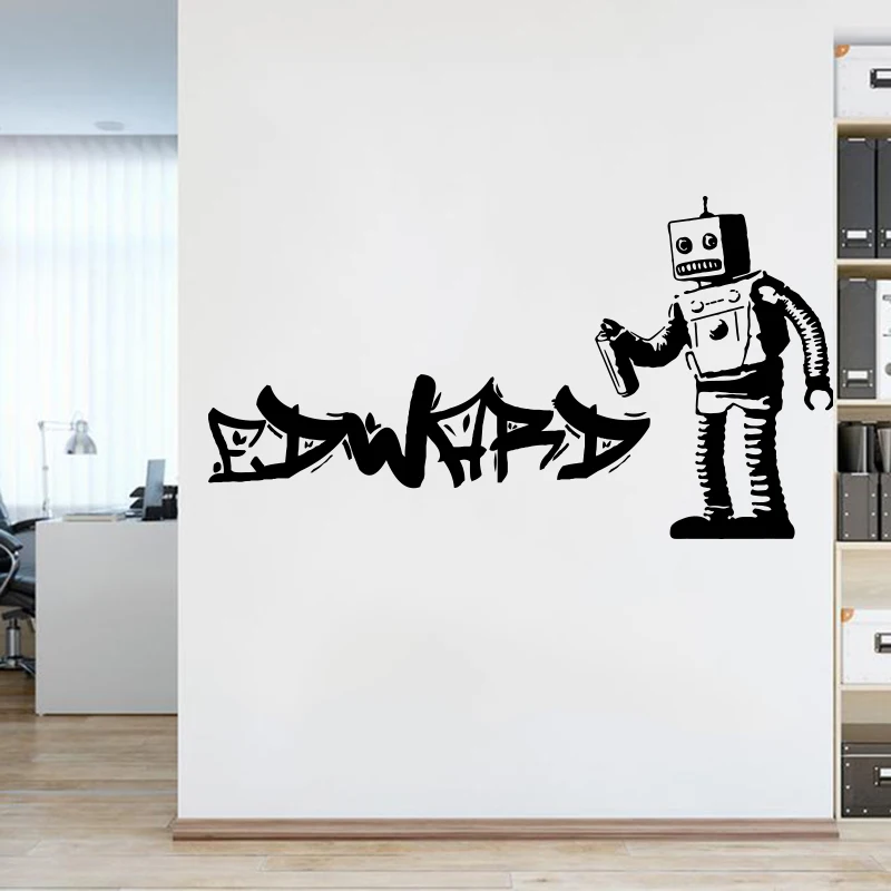 Пользовательское имя Banksy штрих-код робот граффити Наклейка на стену