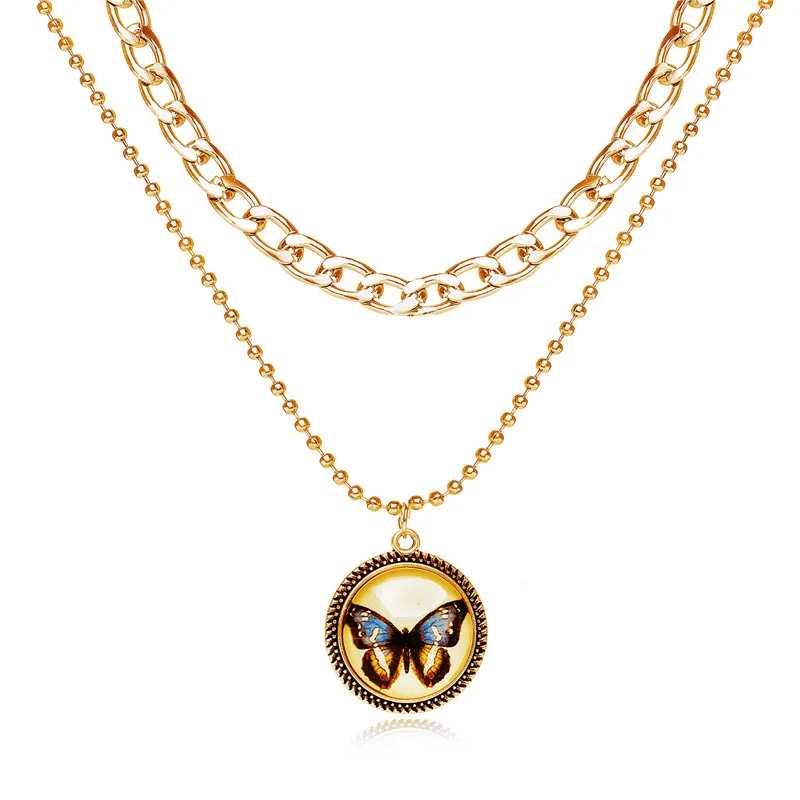 Женское многослойное ожерелье с подвеской-бабочкой, золотистого и серебристого цвета