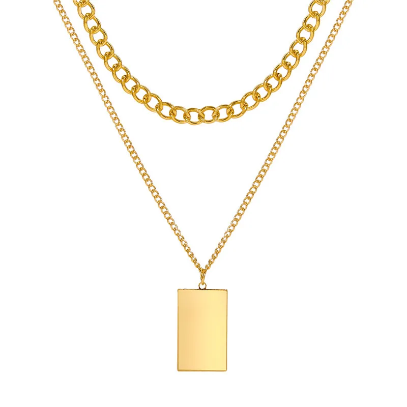 Женское многослойное ожерелье с квадратной подвеской, под золото