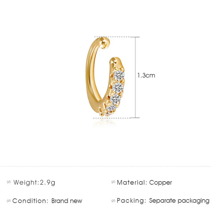 Новинка 2022, золотистые и Серебристые серьги-каффы TOBILO для женщин без пирсинга, серьги с фианитом, серьги-каффы, модные ювелирные изделия, клипсы для ушей